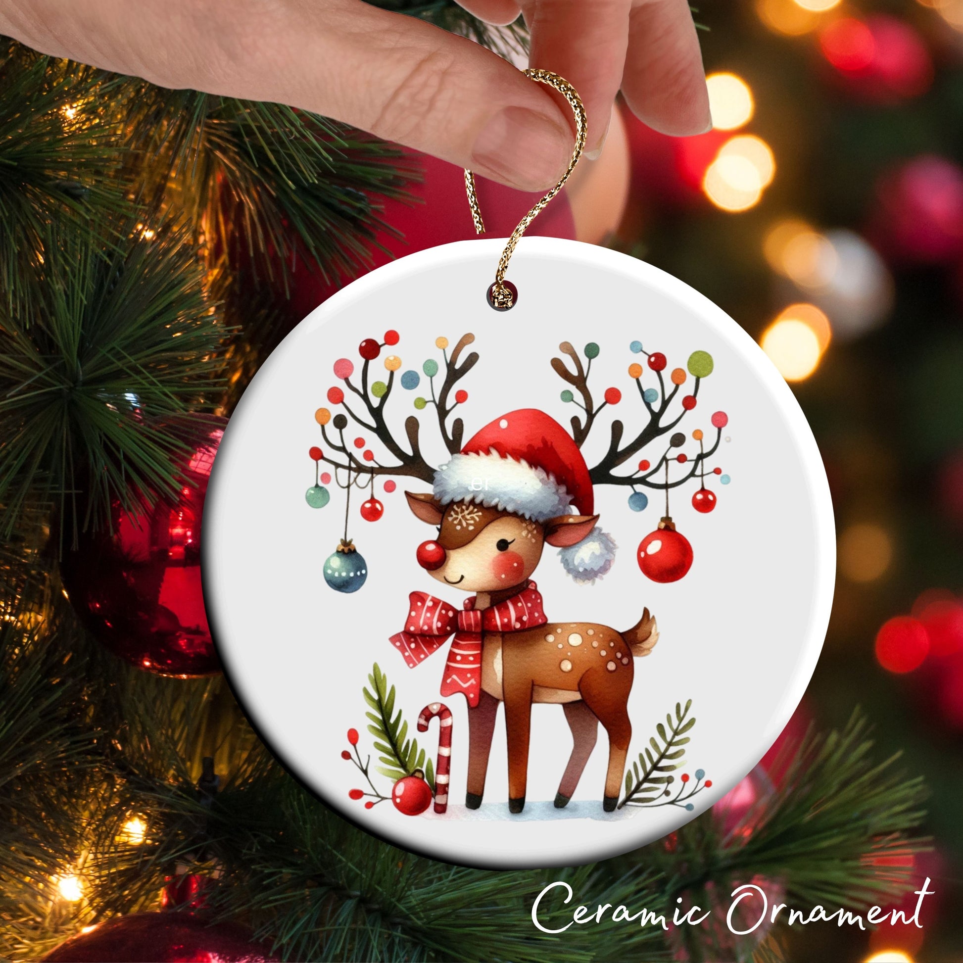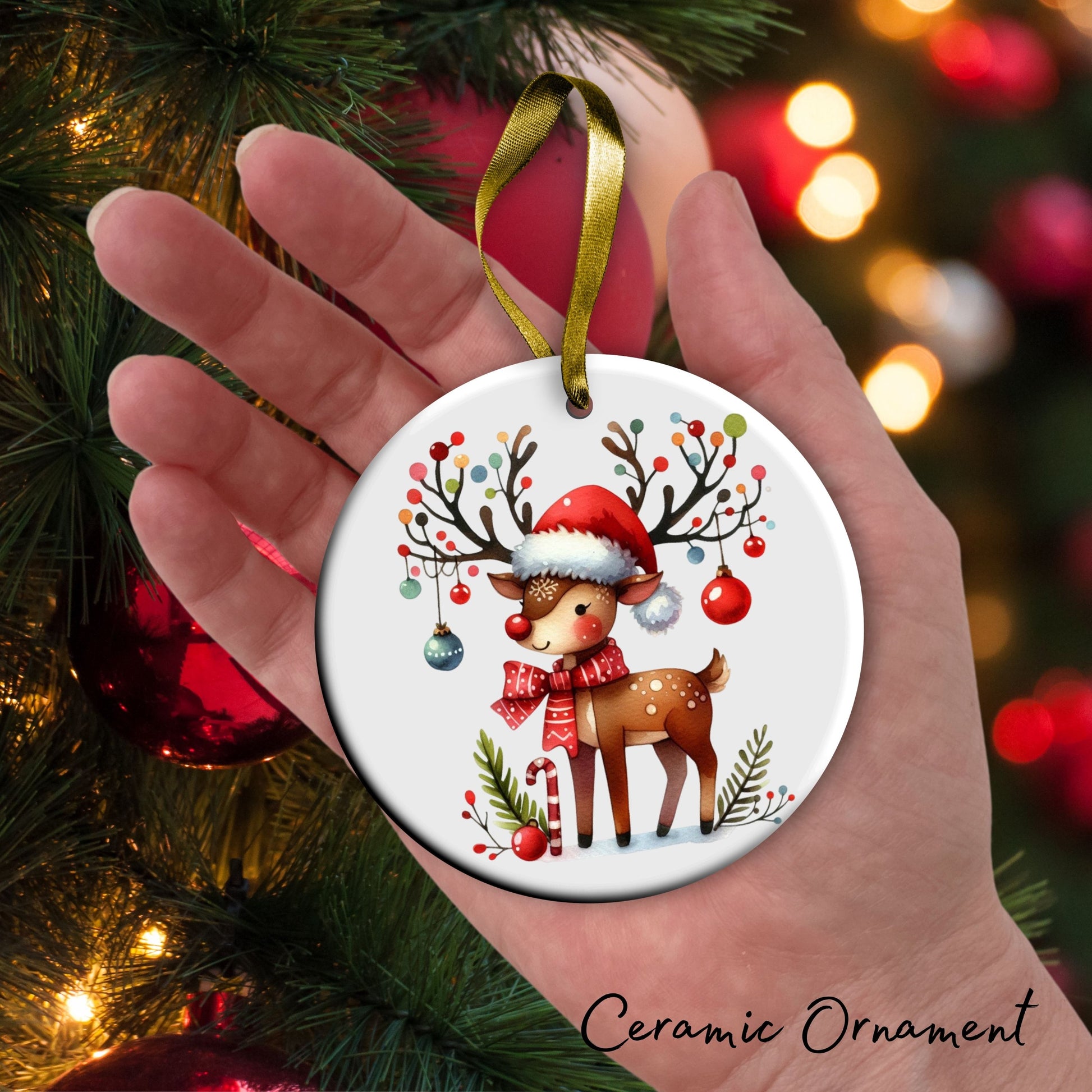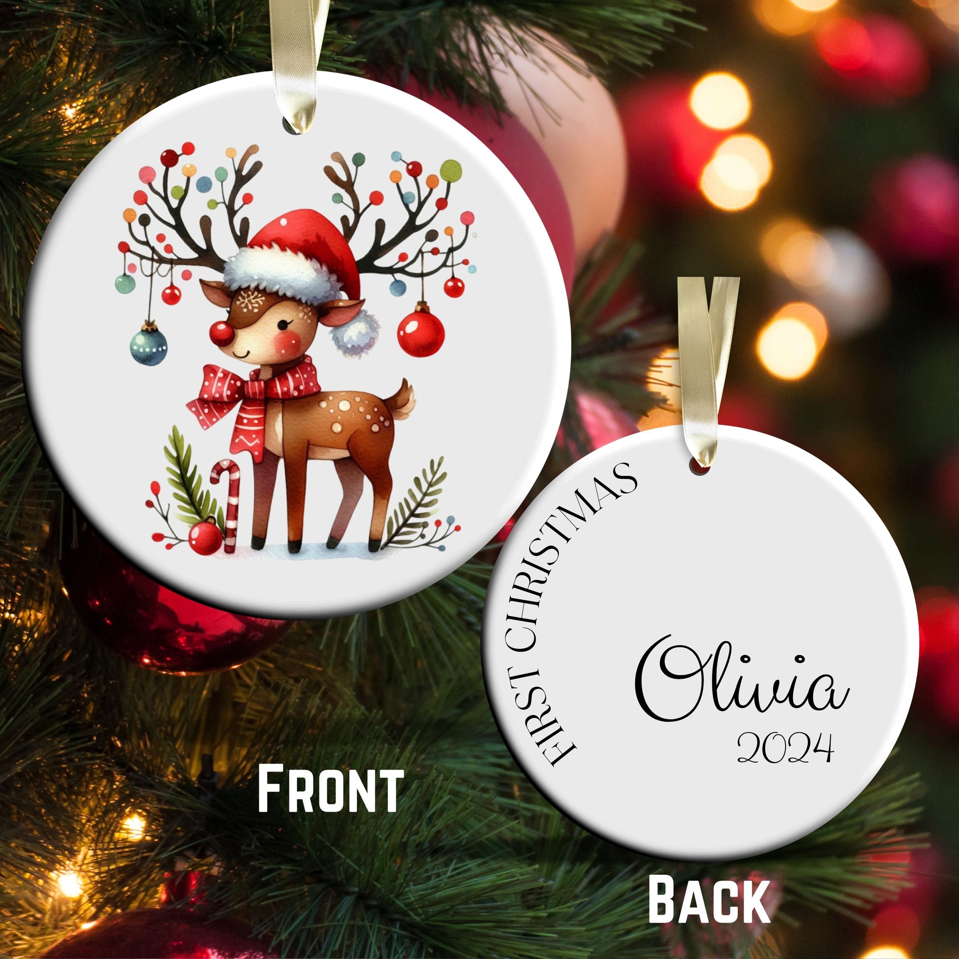 Customize our Baby's First Christmas Reindeer Ceramic Ornament with your childs name. Perfect for your that first gift of Christmas.