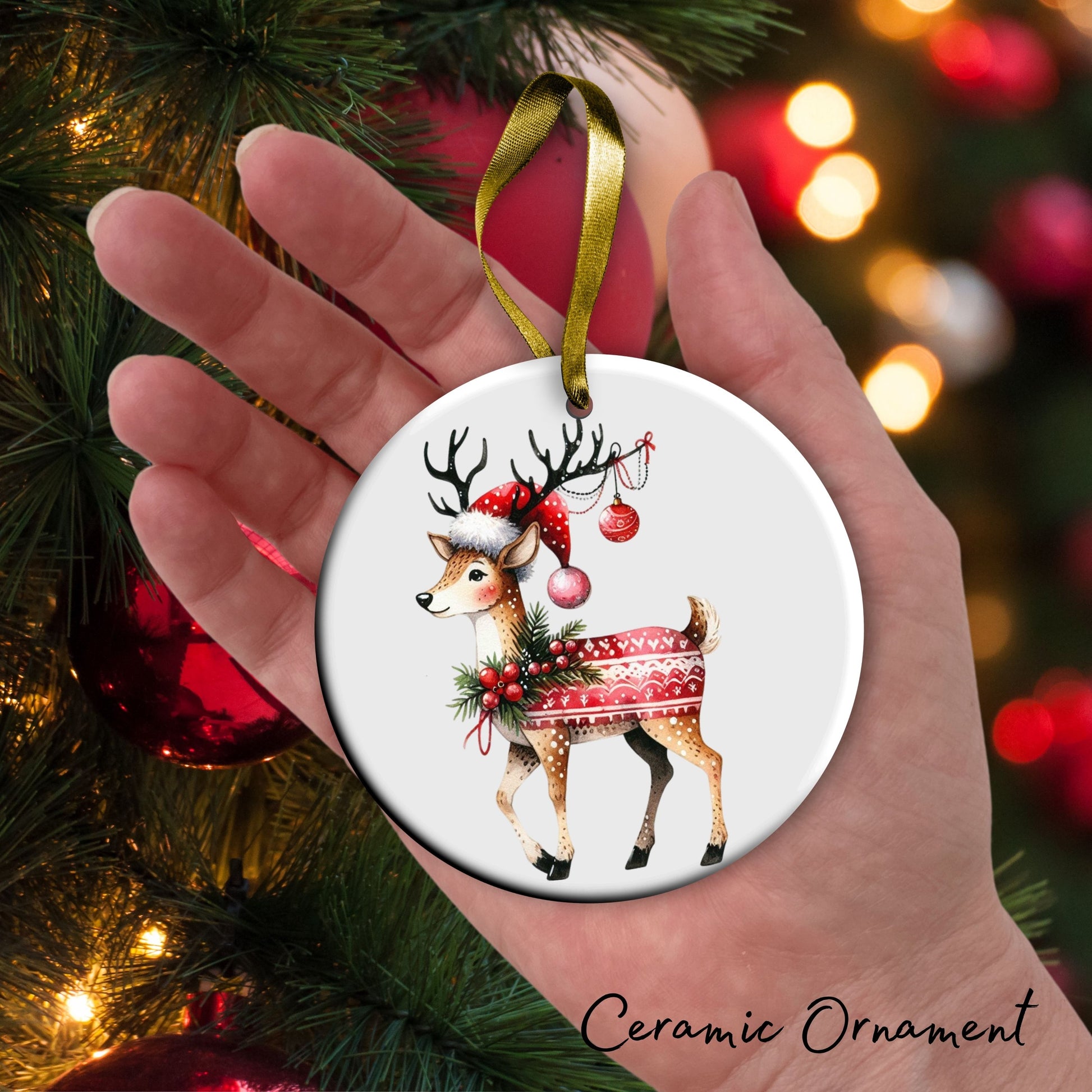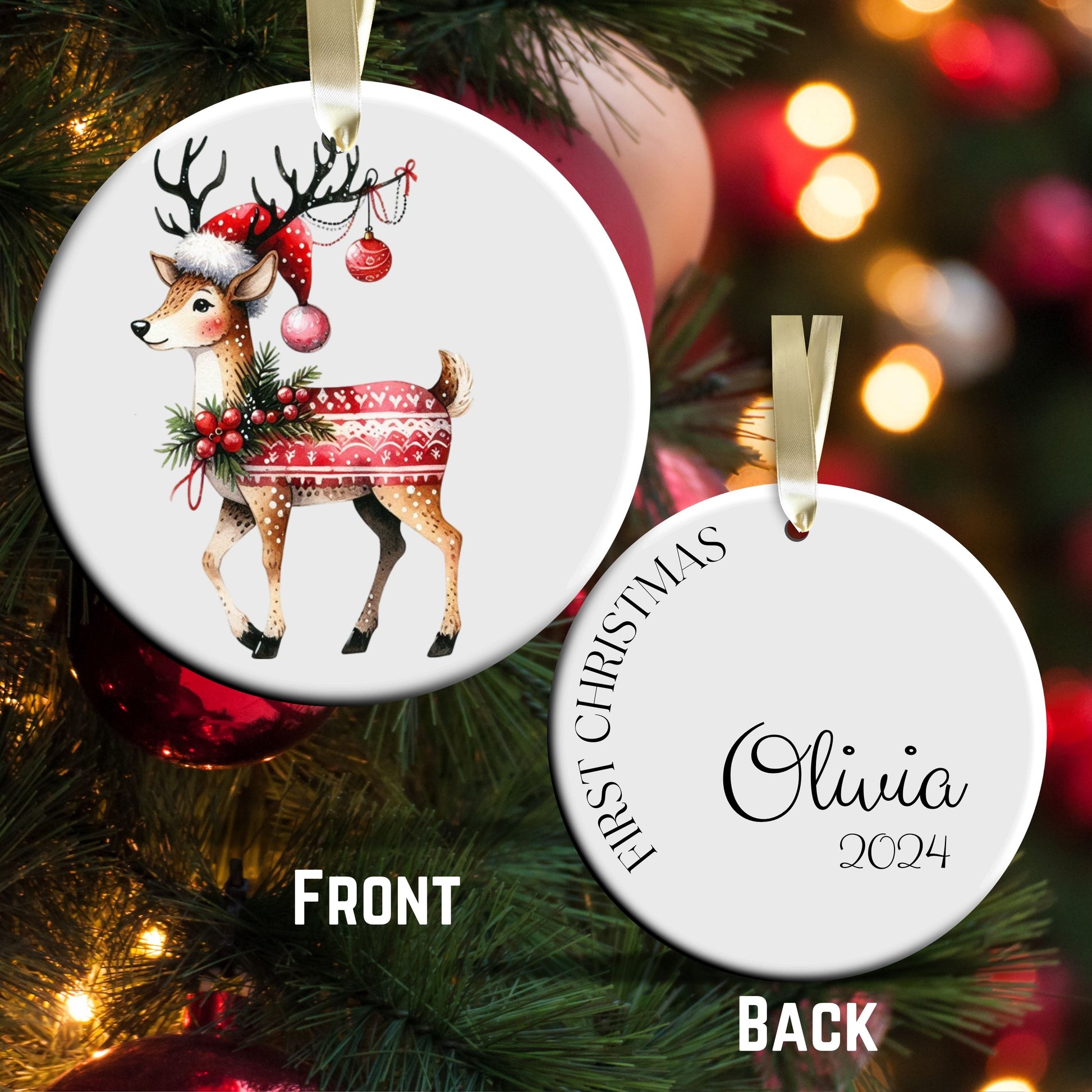 Customize our Baby's First Christmas Reindeer Ceramic Ornament with your childs name. Perfect for your that first gift of Christmas.