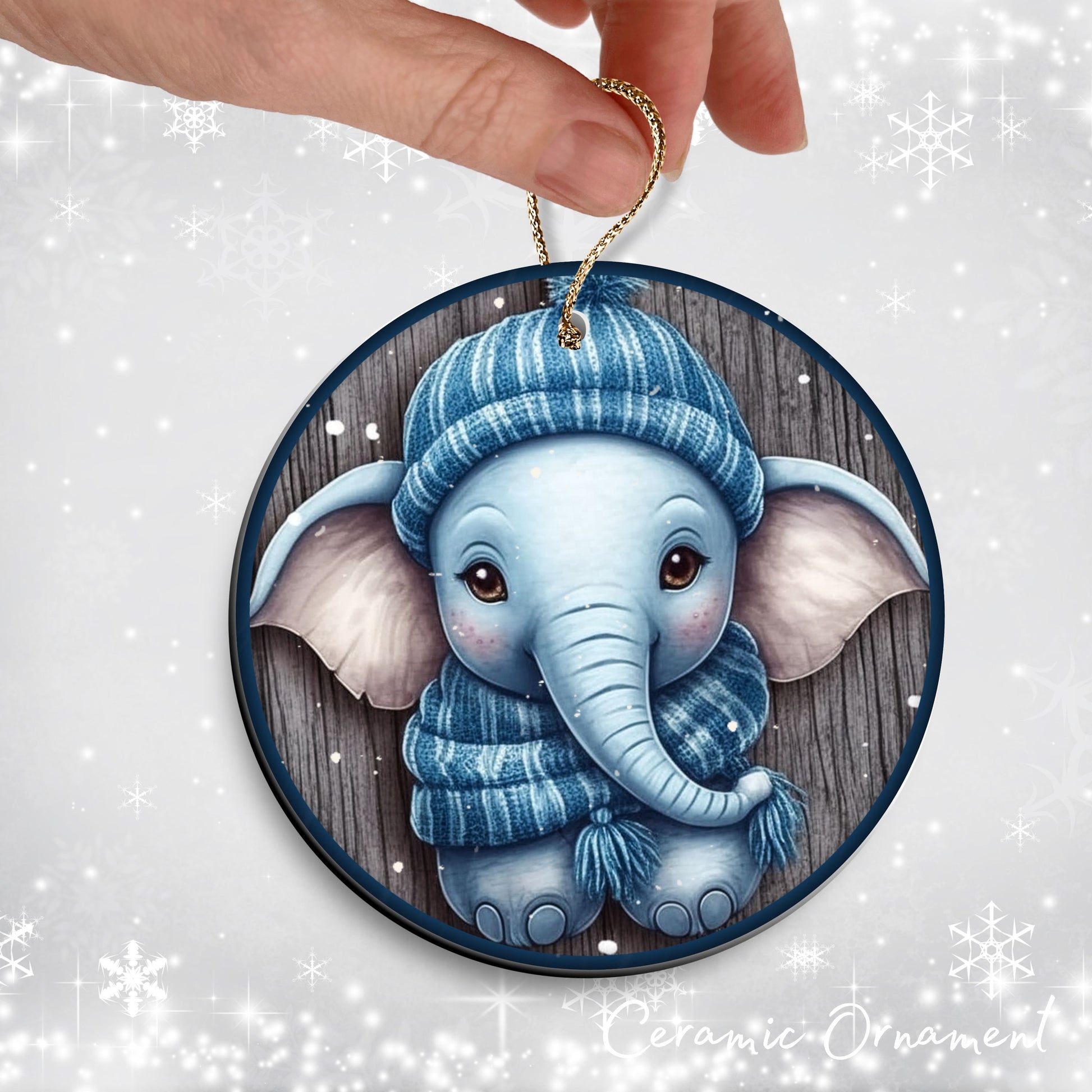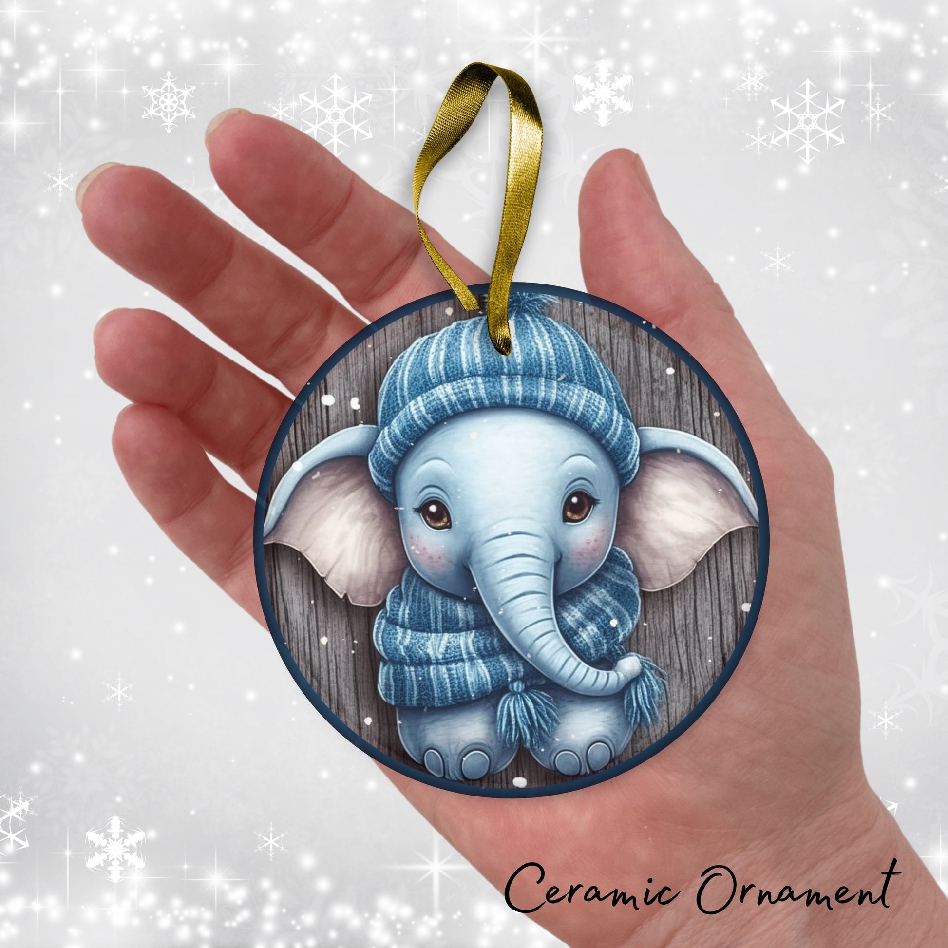 Blue Elephant Christmas Ceramic Ornament