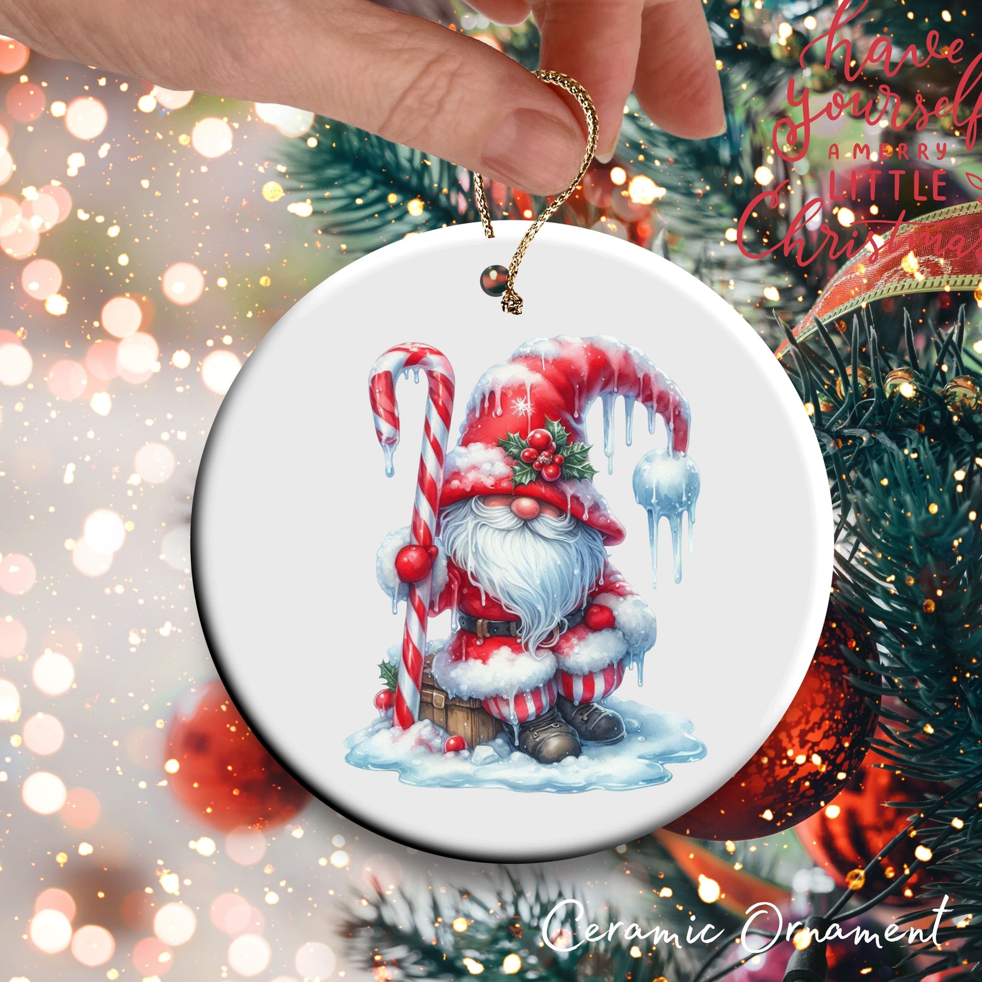 Candy Cane Icing Gnome Ceramic Ornament 50-02