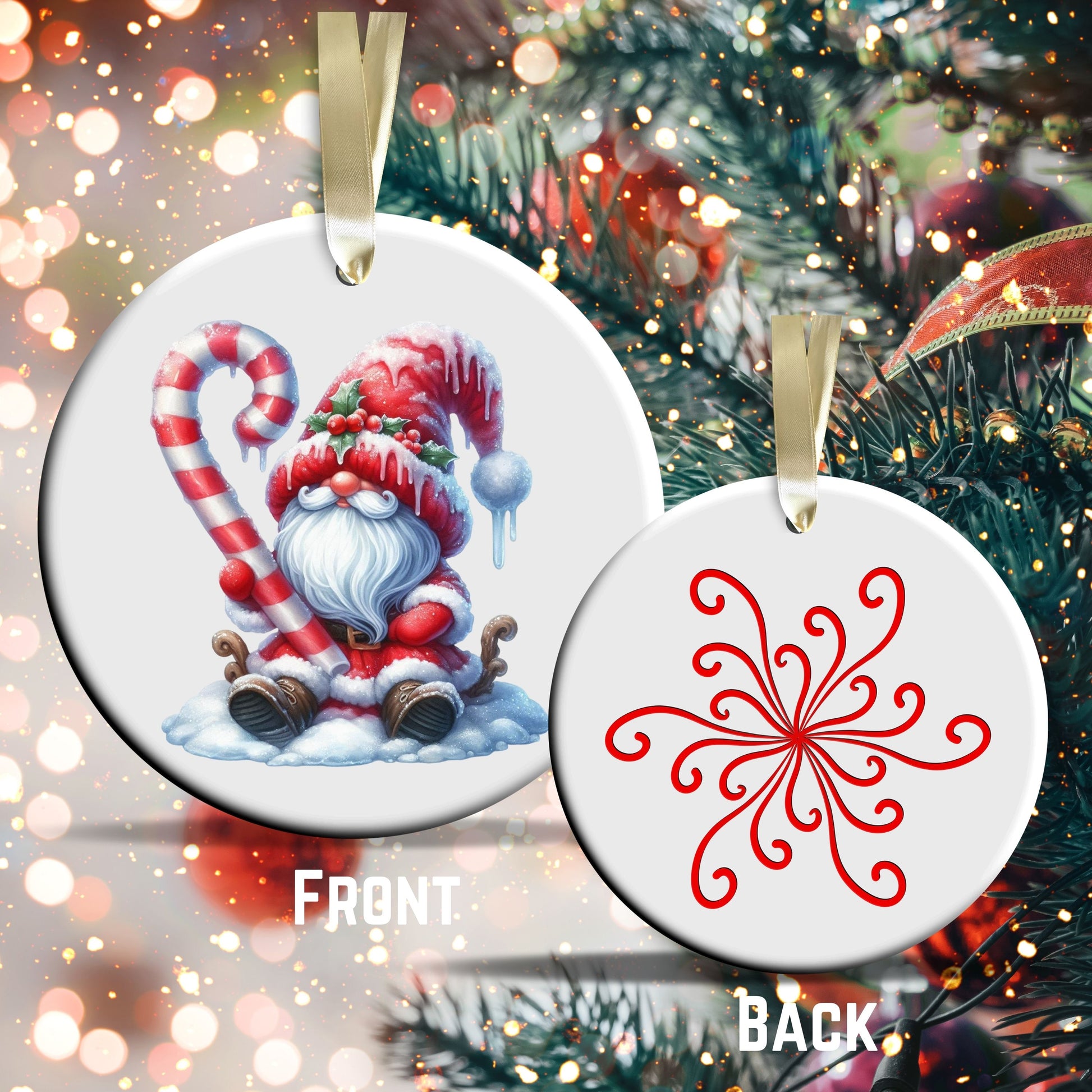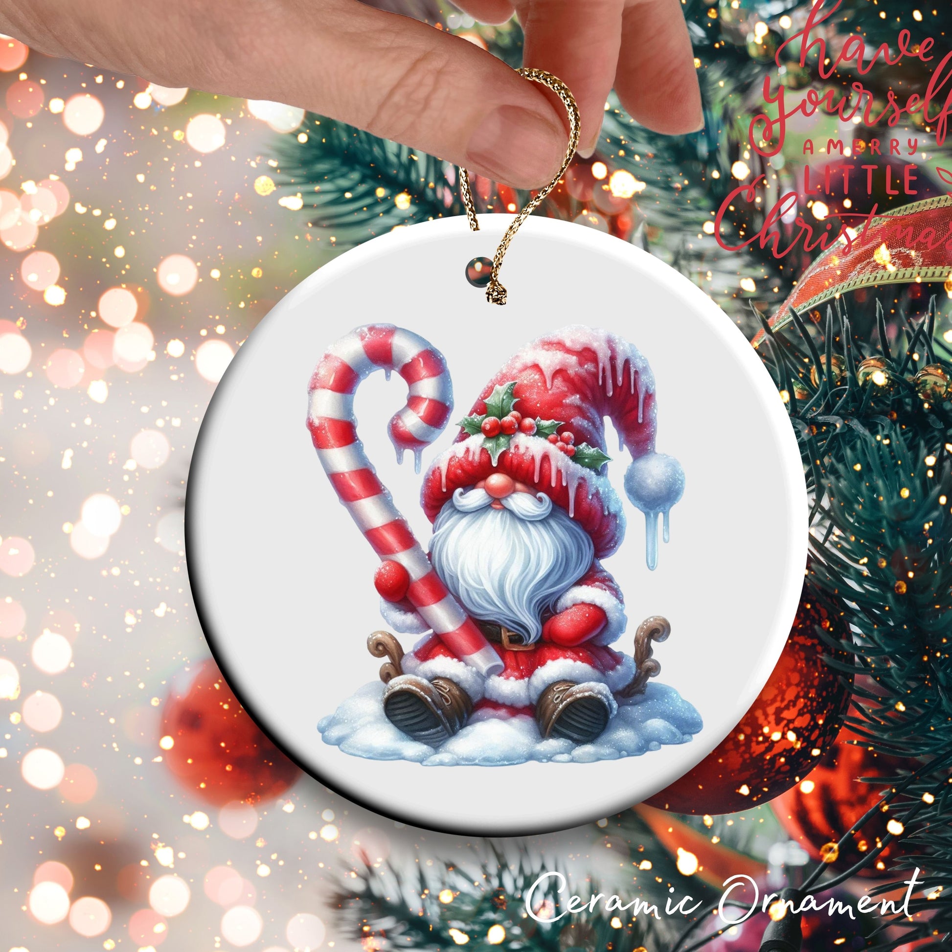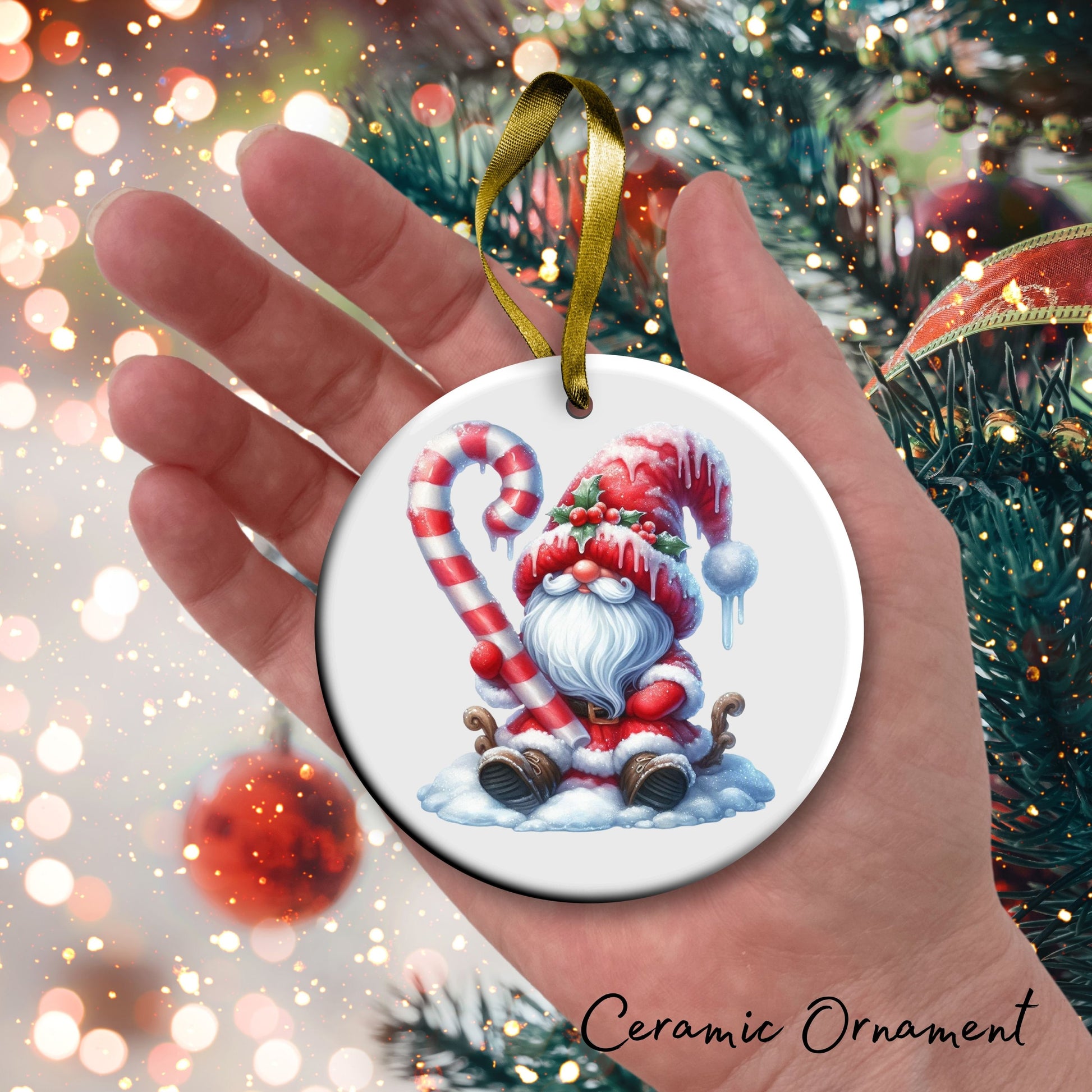 Candy Cane Icing Gnome Ceramic Ornament 50-03