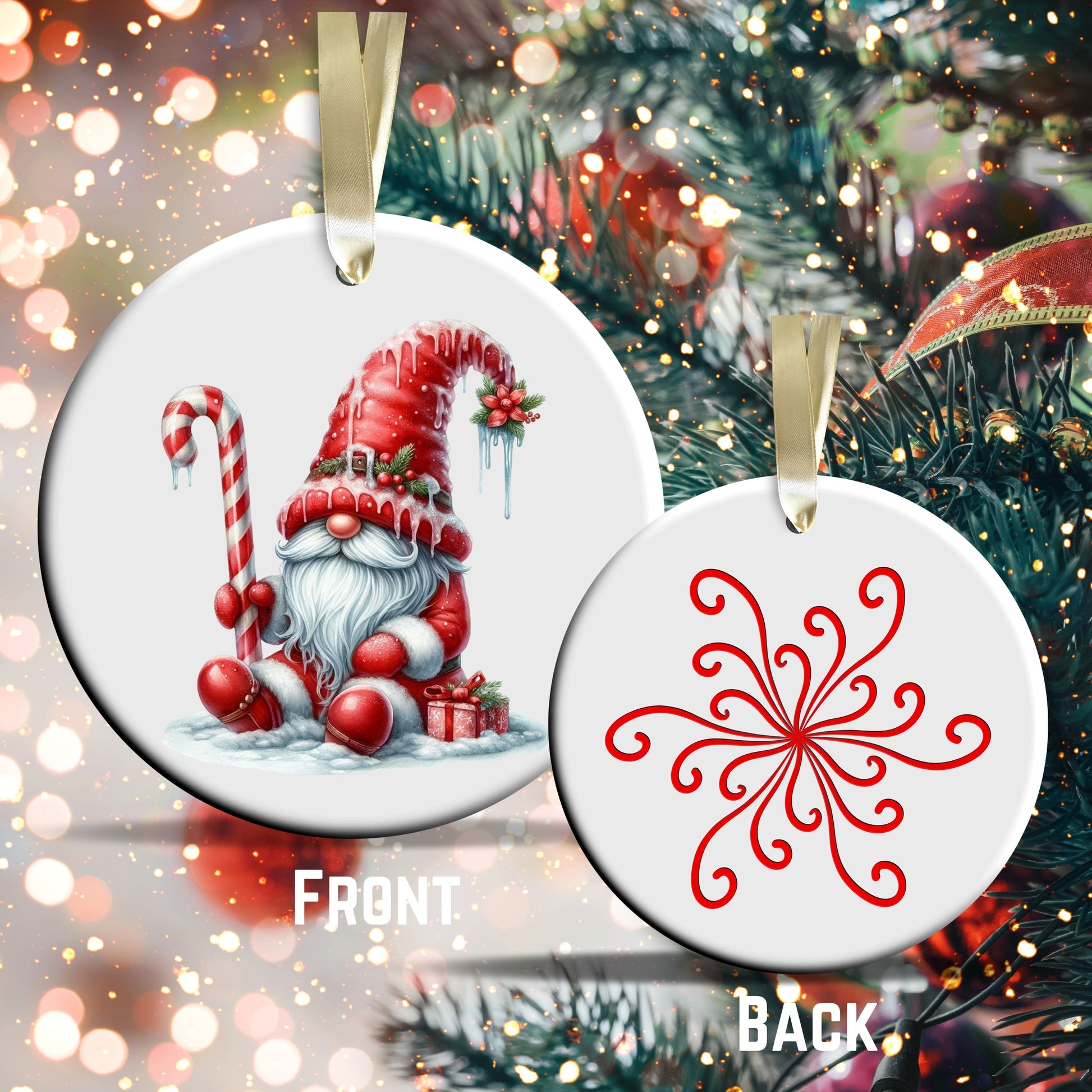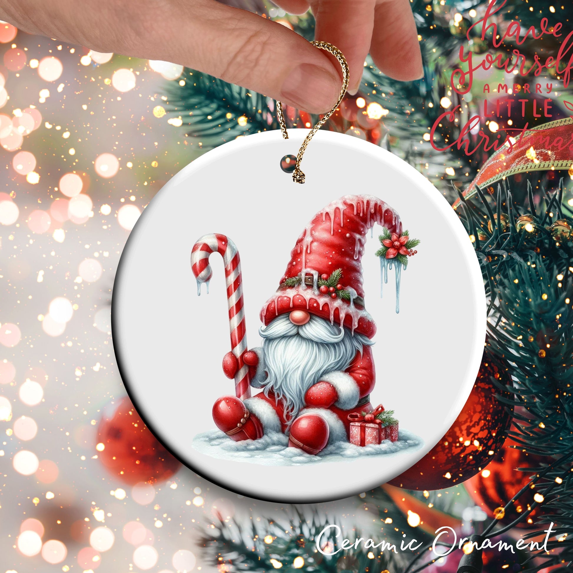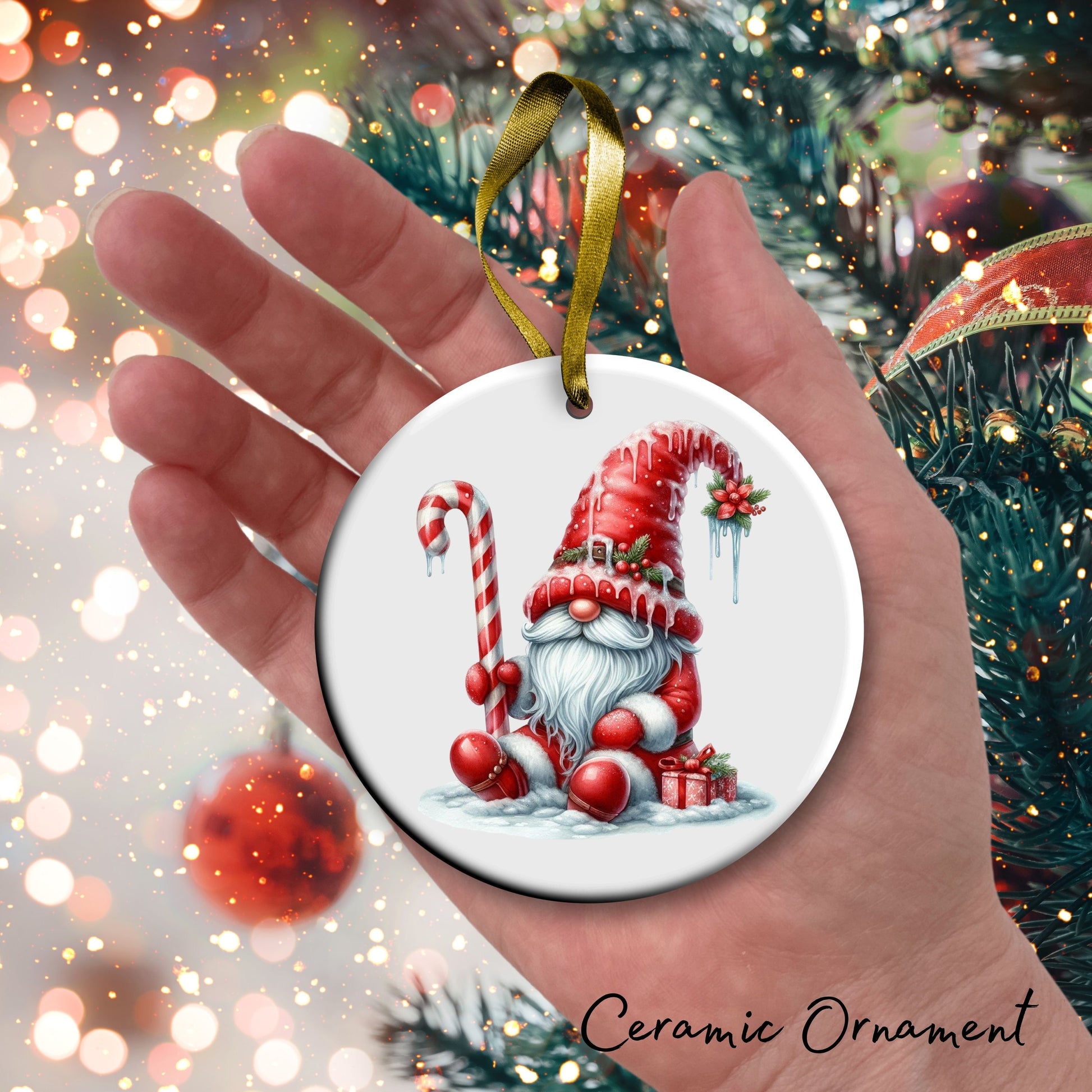 Candy Cane Icing Gnome Ceramic Ornament 50-04