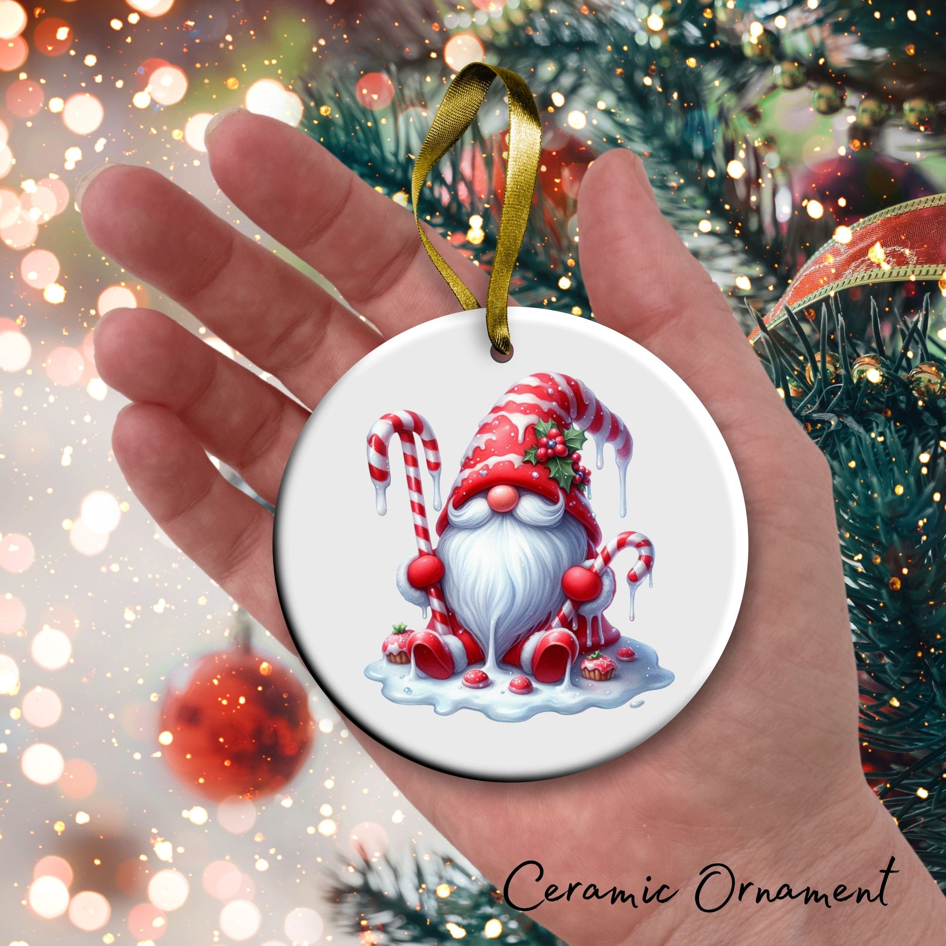Candy Cane Icing Gnome Ceramic Ornament 50-17