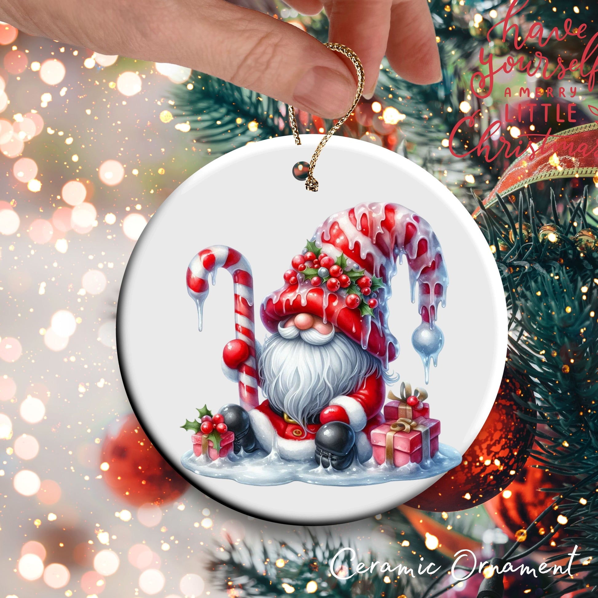 Candy Cane Icing Gnome Ceramic Ornament 50-22