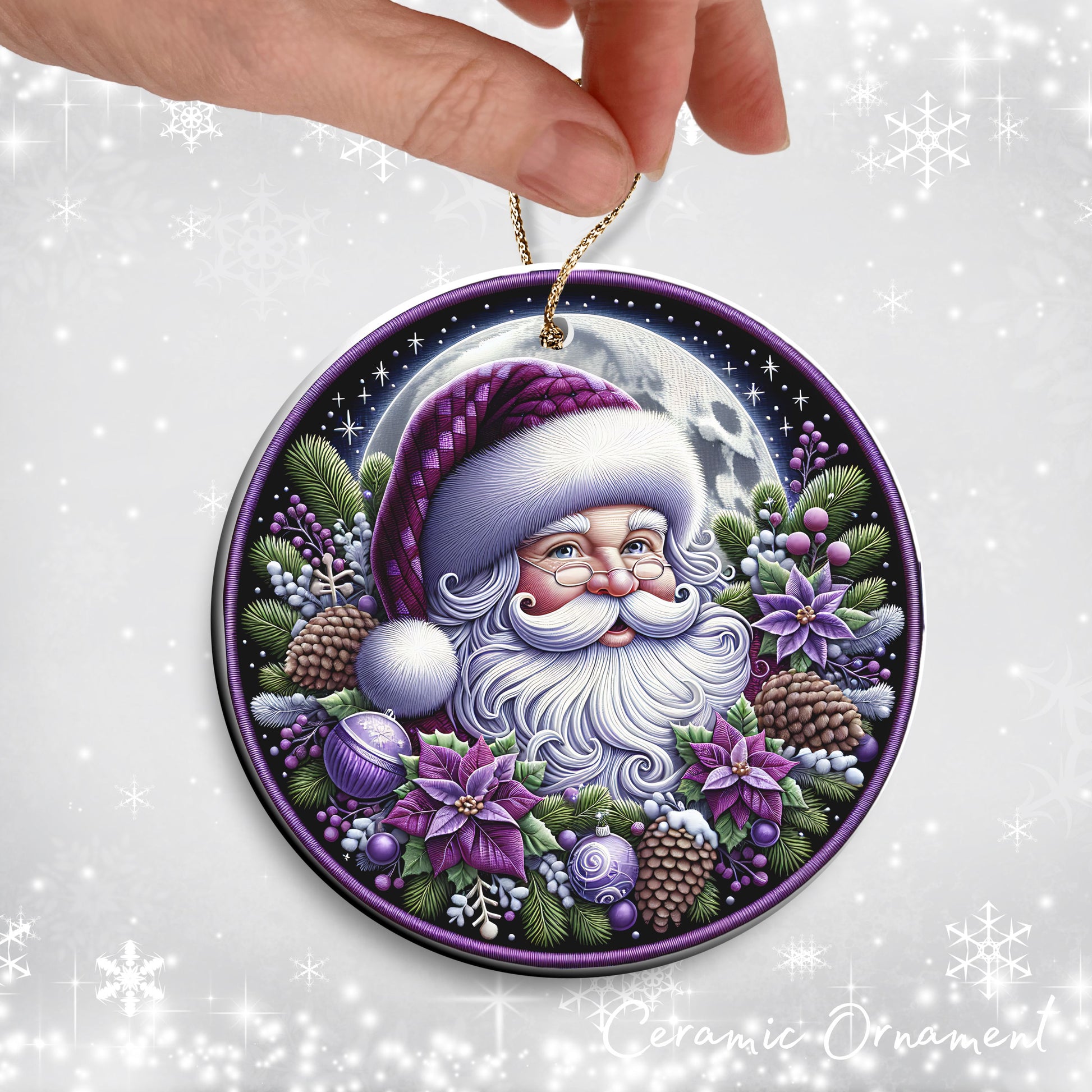 Embroidered Purple Santa Ceramic Ornament SET 102-03