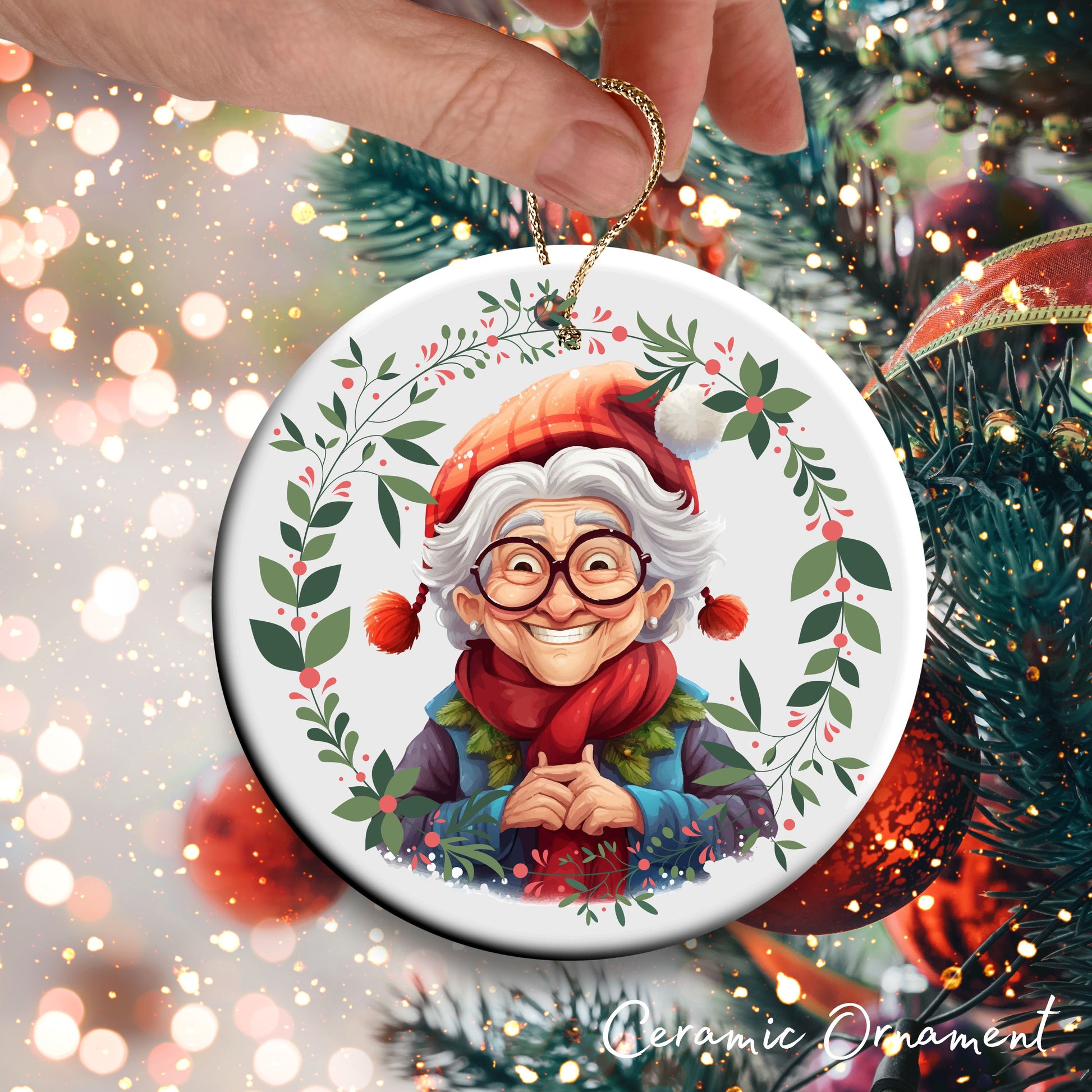Funny Old Lady Christmas Ceramic Ornament 51-01
