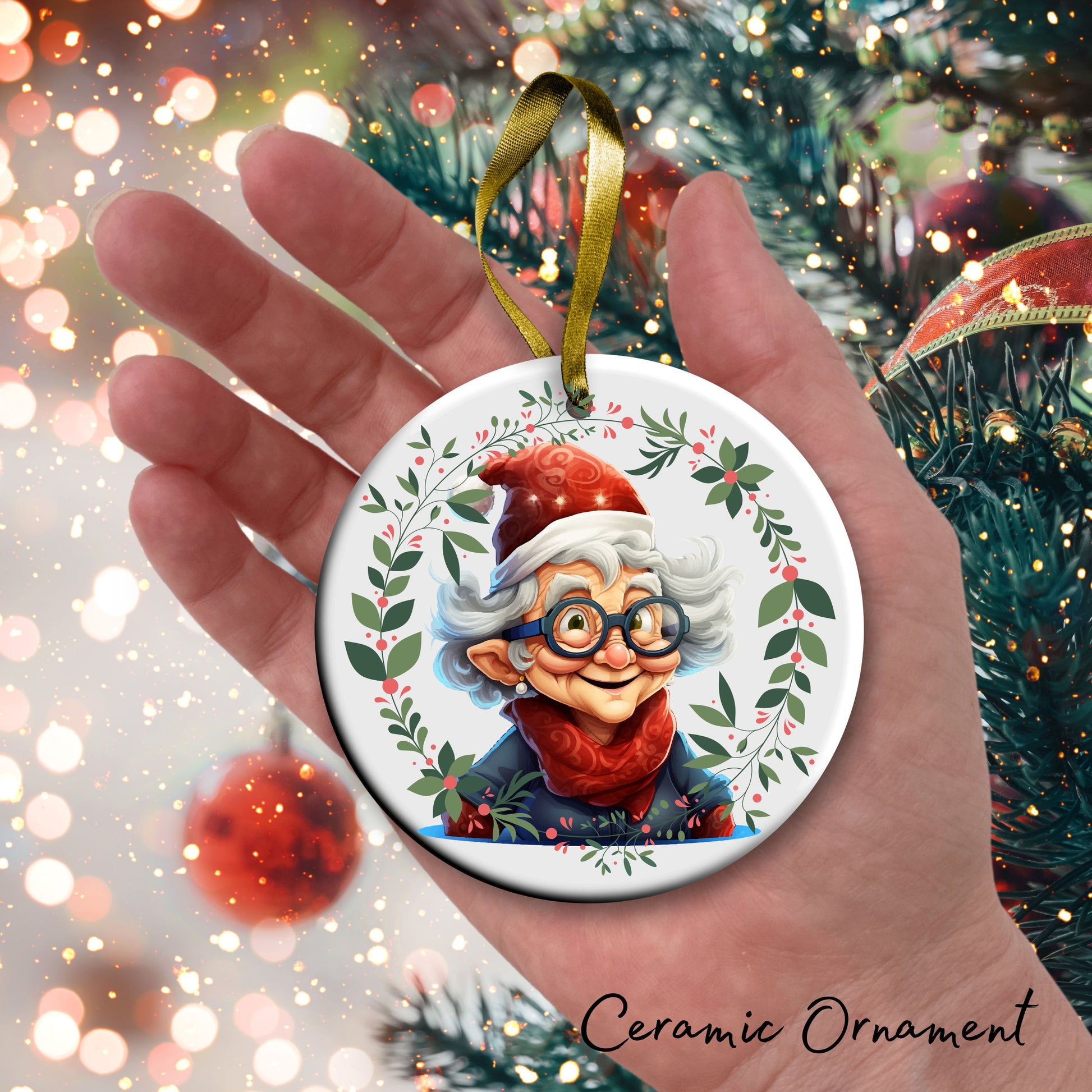 Funny Old Lady Christmas Ceramic Ornament 51-06