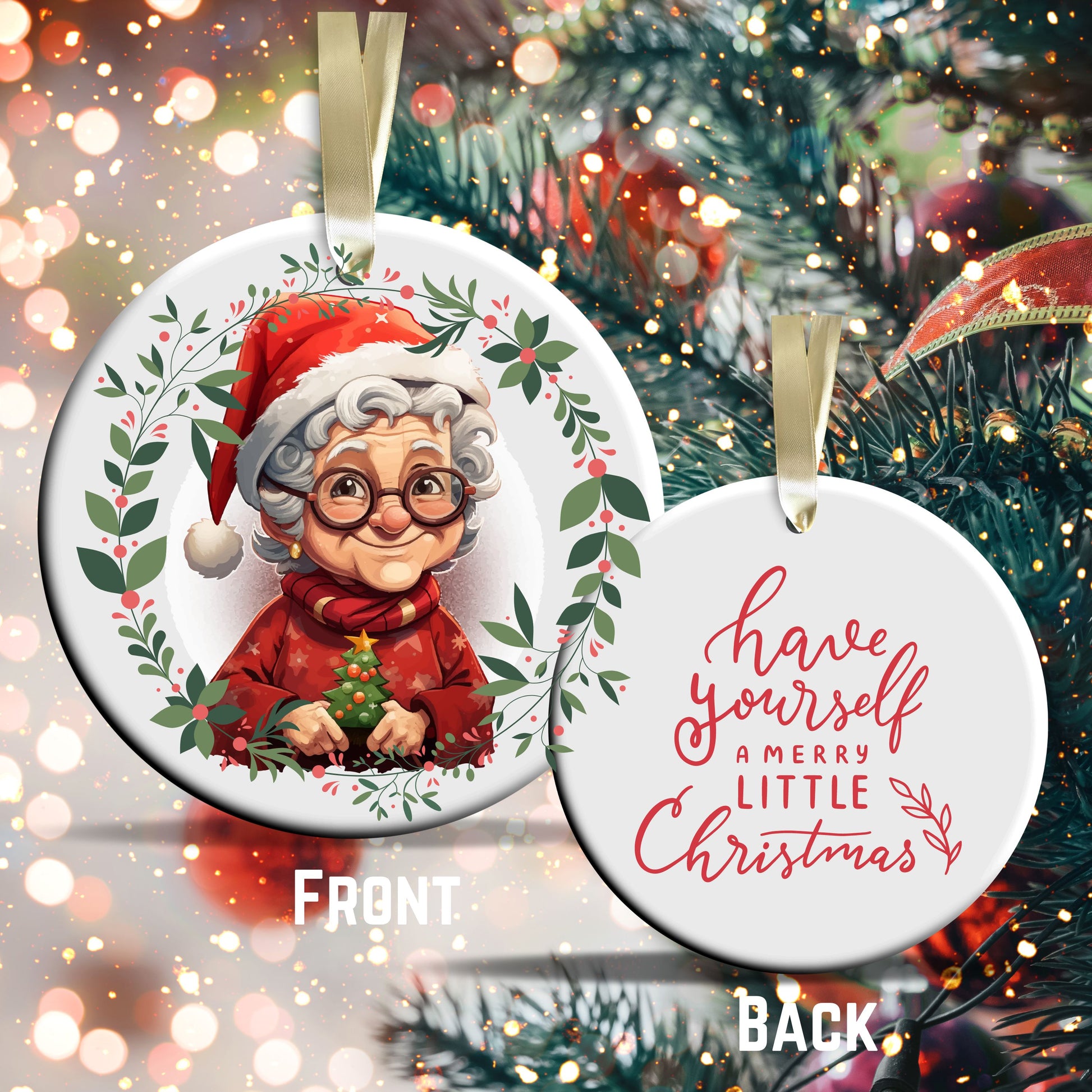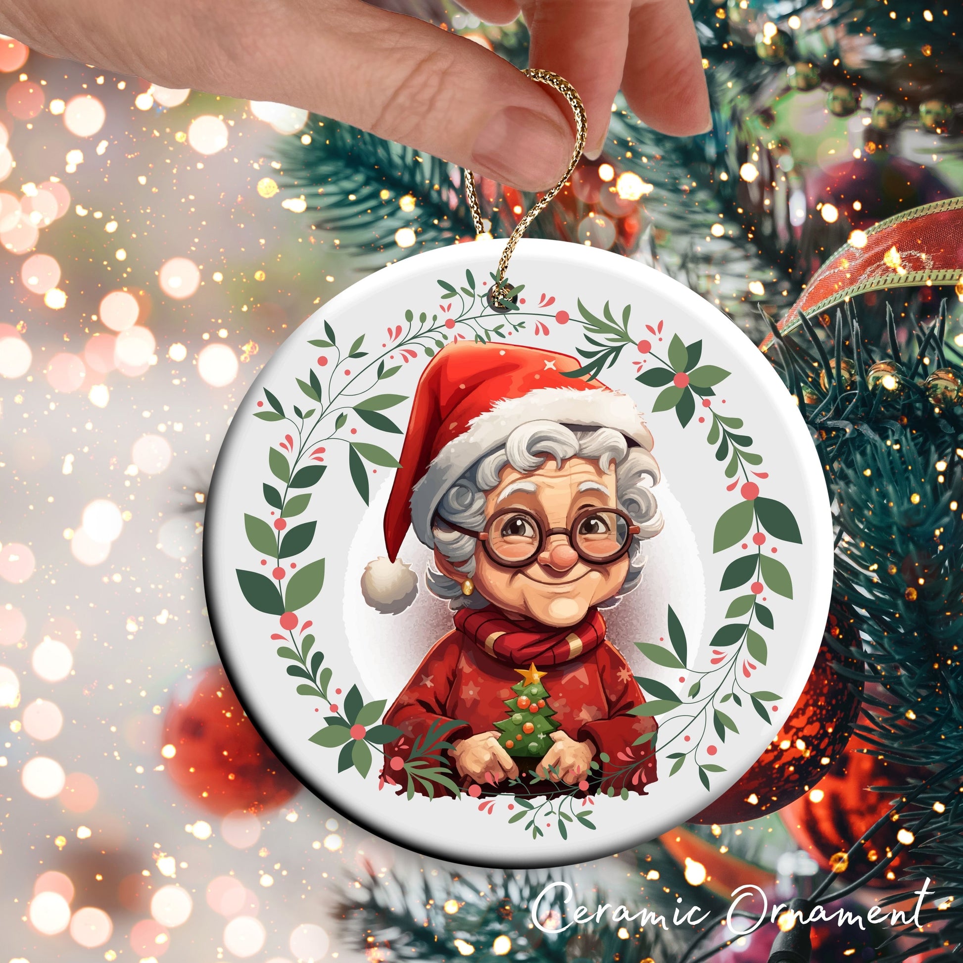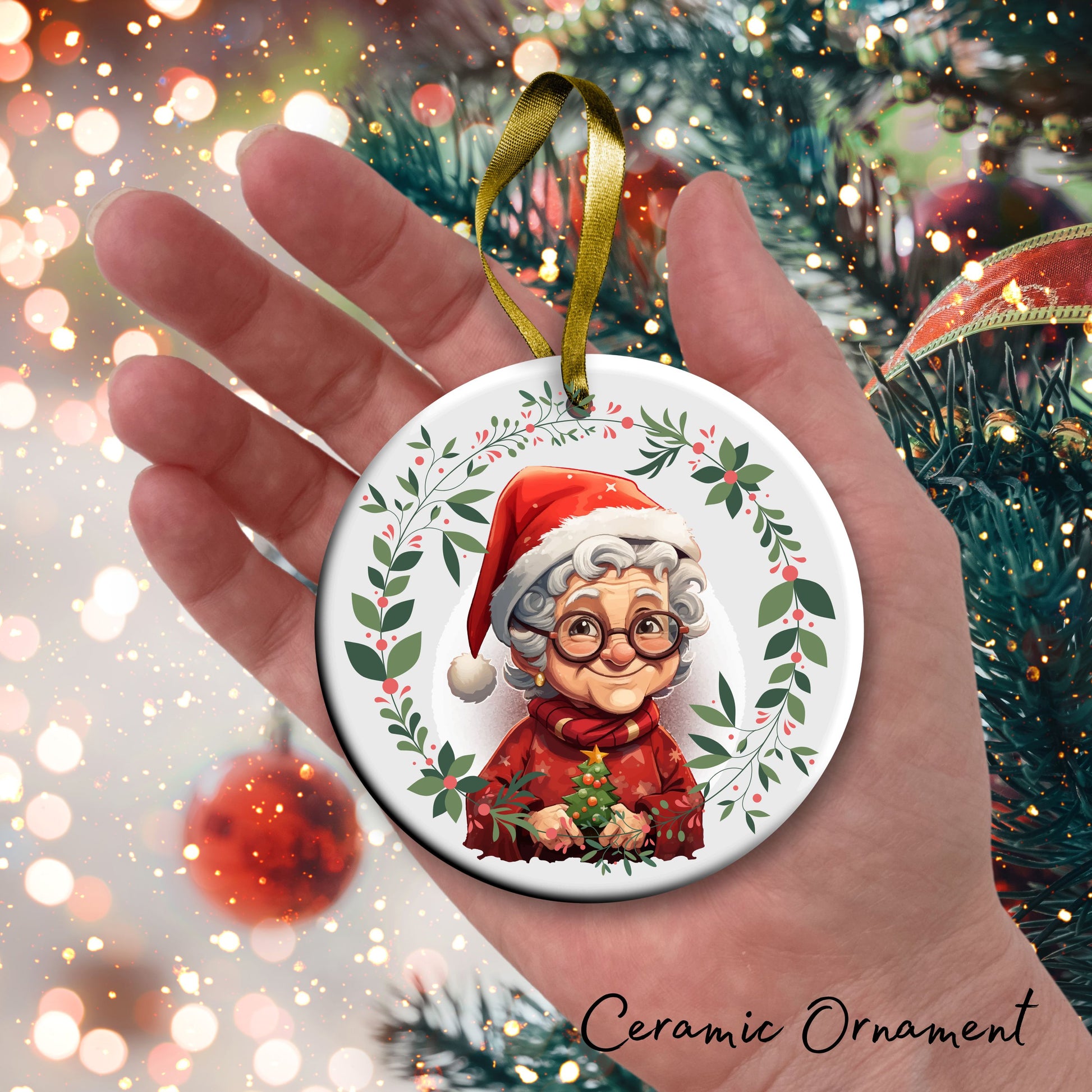 Funny Old Lady Christmas Ceramic Ornament 51-09