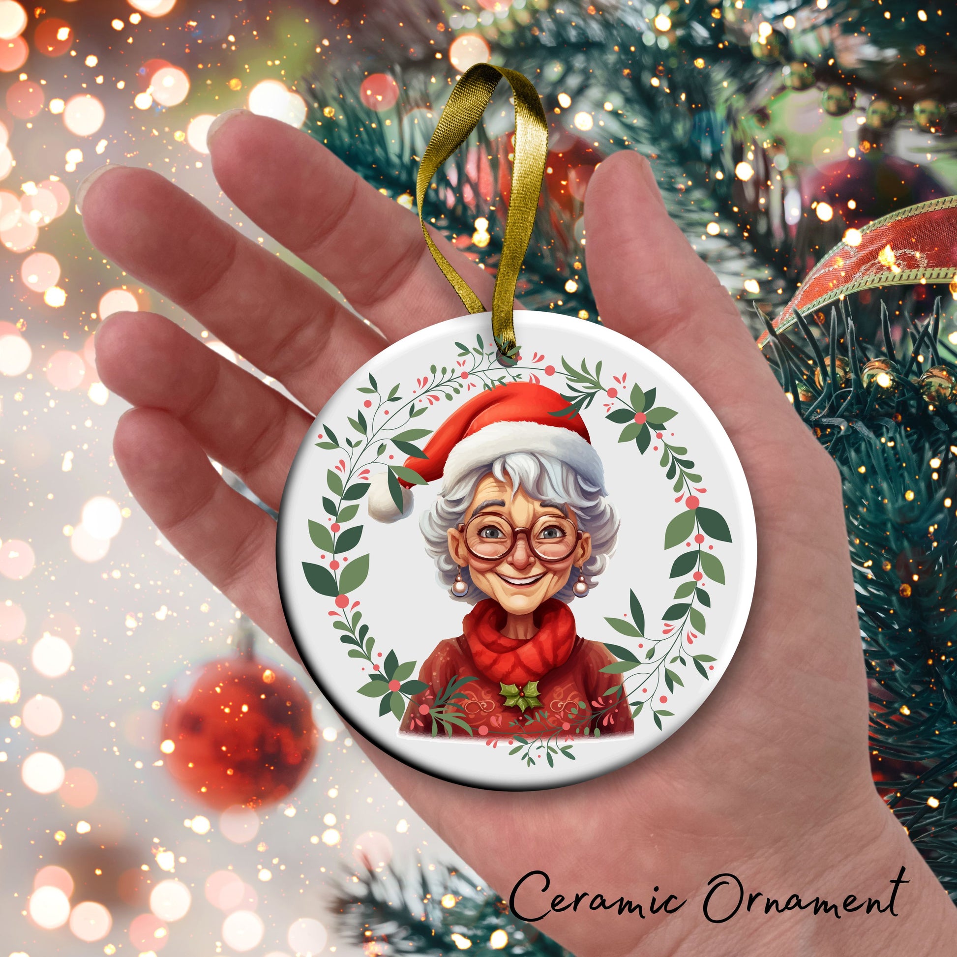 Funny Old Lady Christmas Ceramic Ornament 51-10