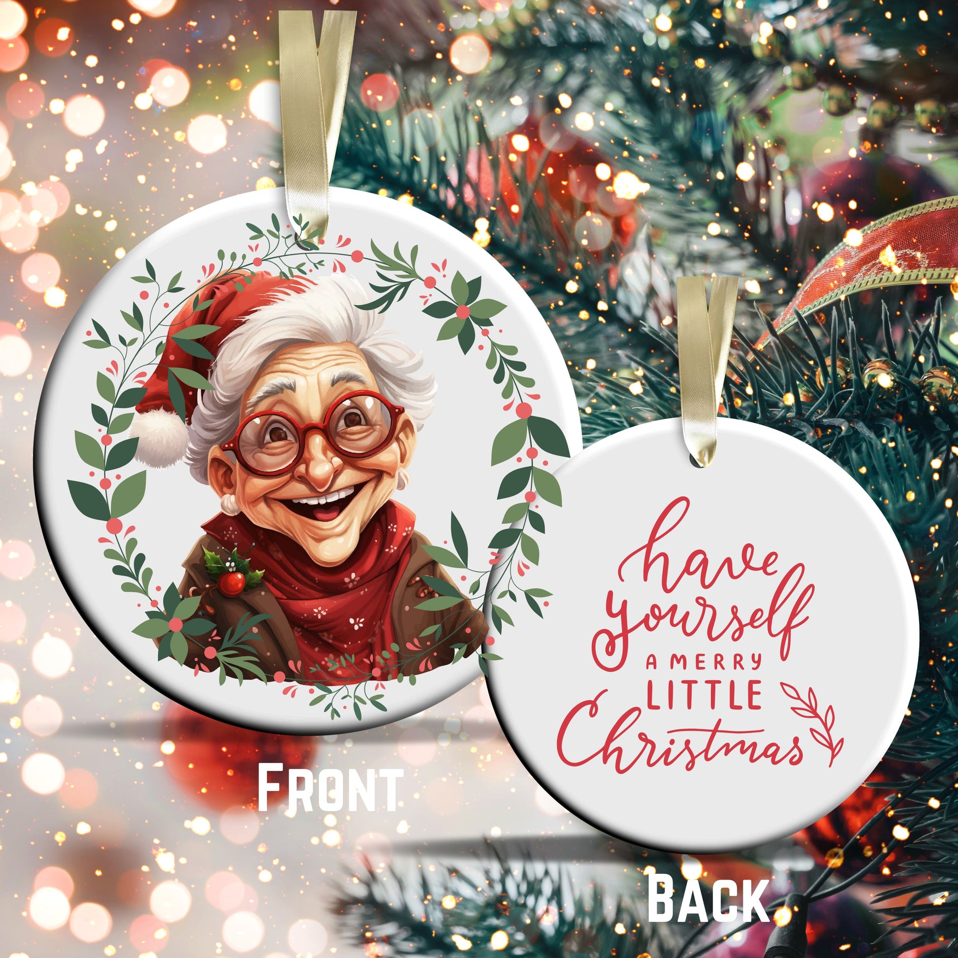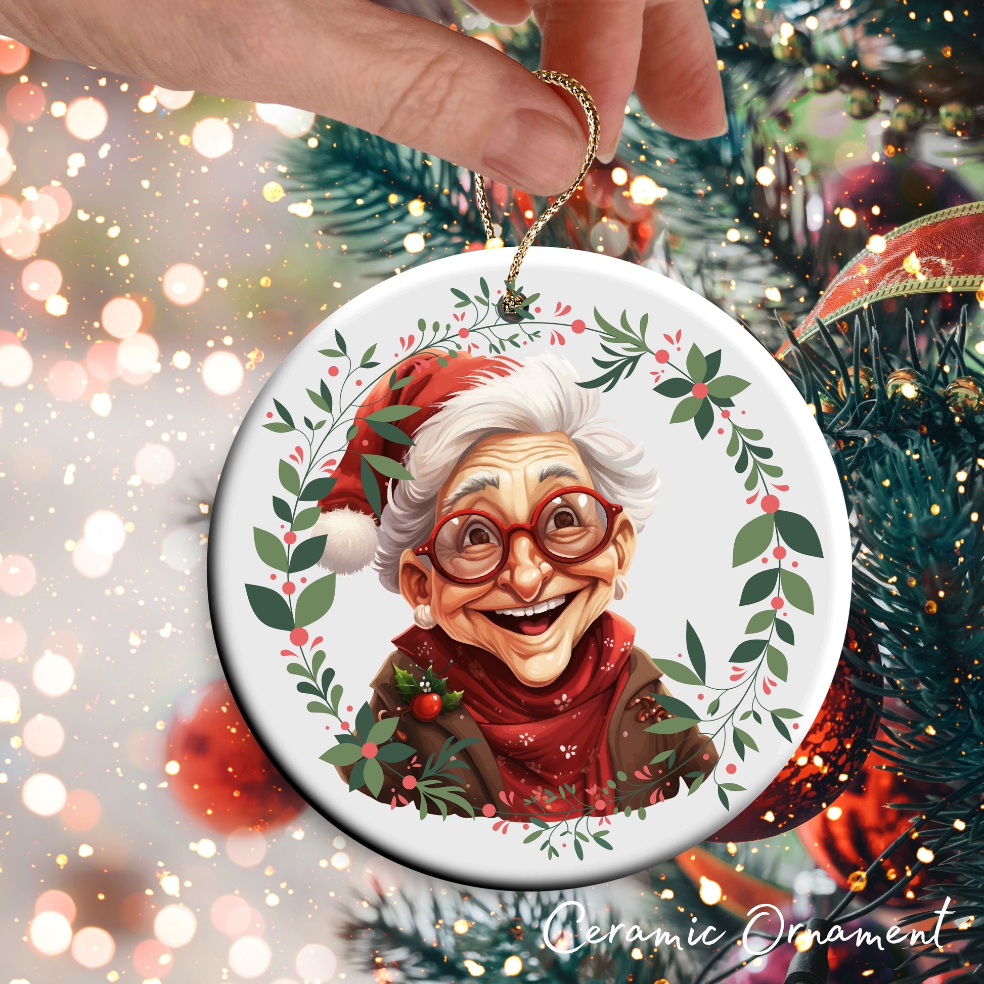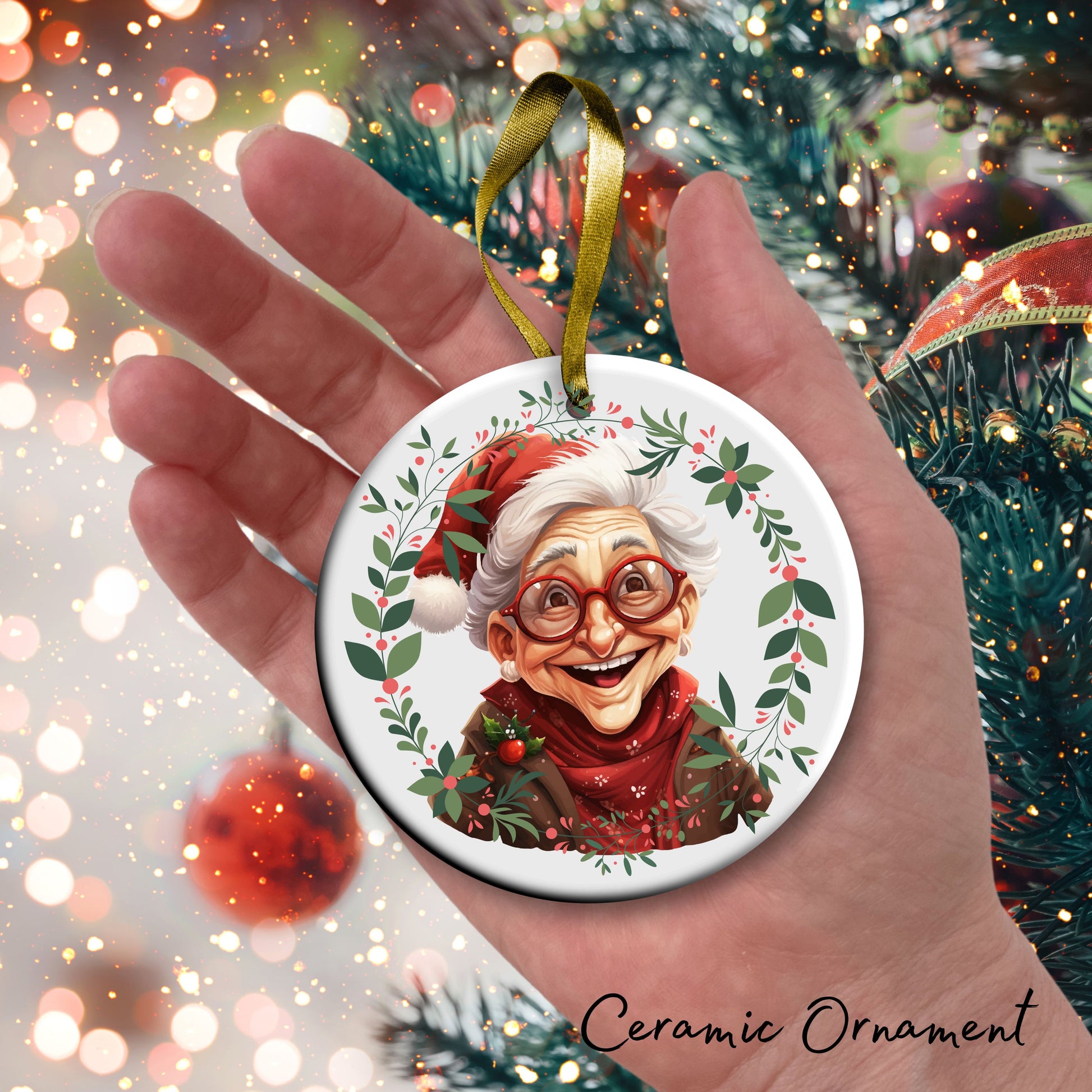 Funny Old Lady Christmas Ceramic Ornament 51-11