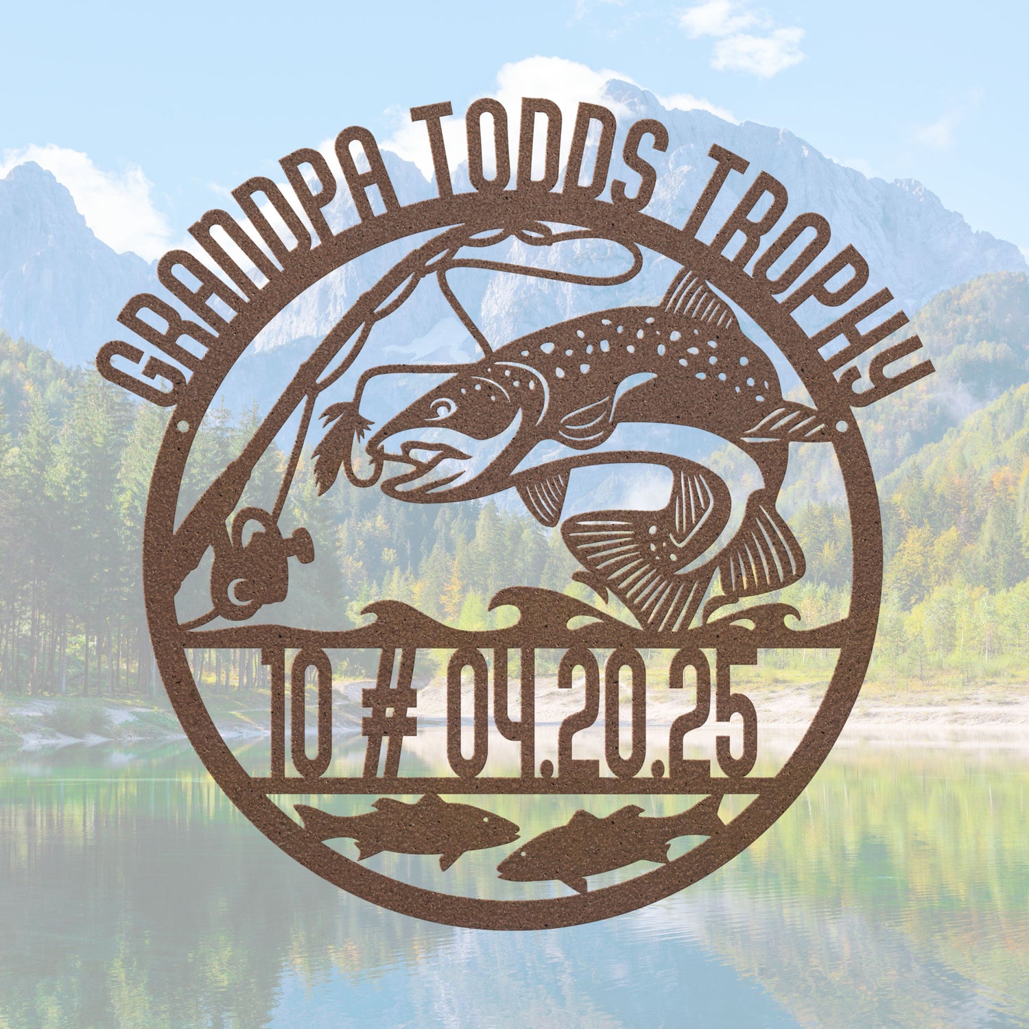 Commemorate the catch of a lifetime with our custom Trophy Fish Metal Sign, proudly honoring Grandpa Todd’s 10-pound catch on April 20, 2025. Featuring bold text and a detailed fish design, this sign is perfect for cabins, man caves, or anywhere fishing stories are told. It's a lasting tribute to a legendary day on the water.