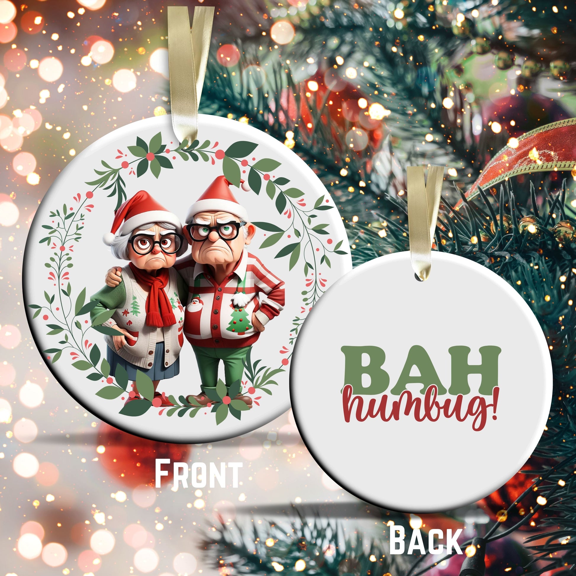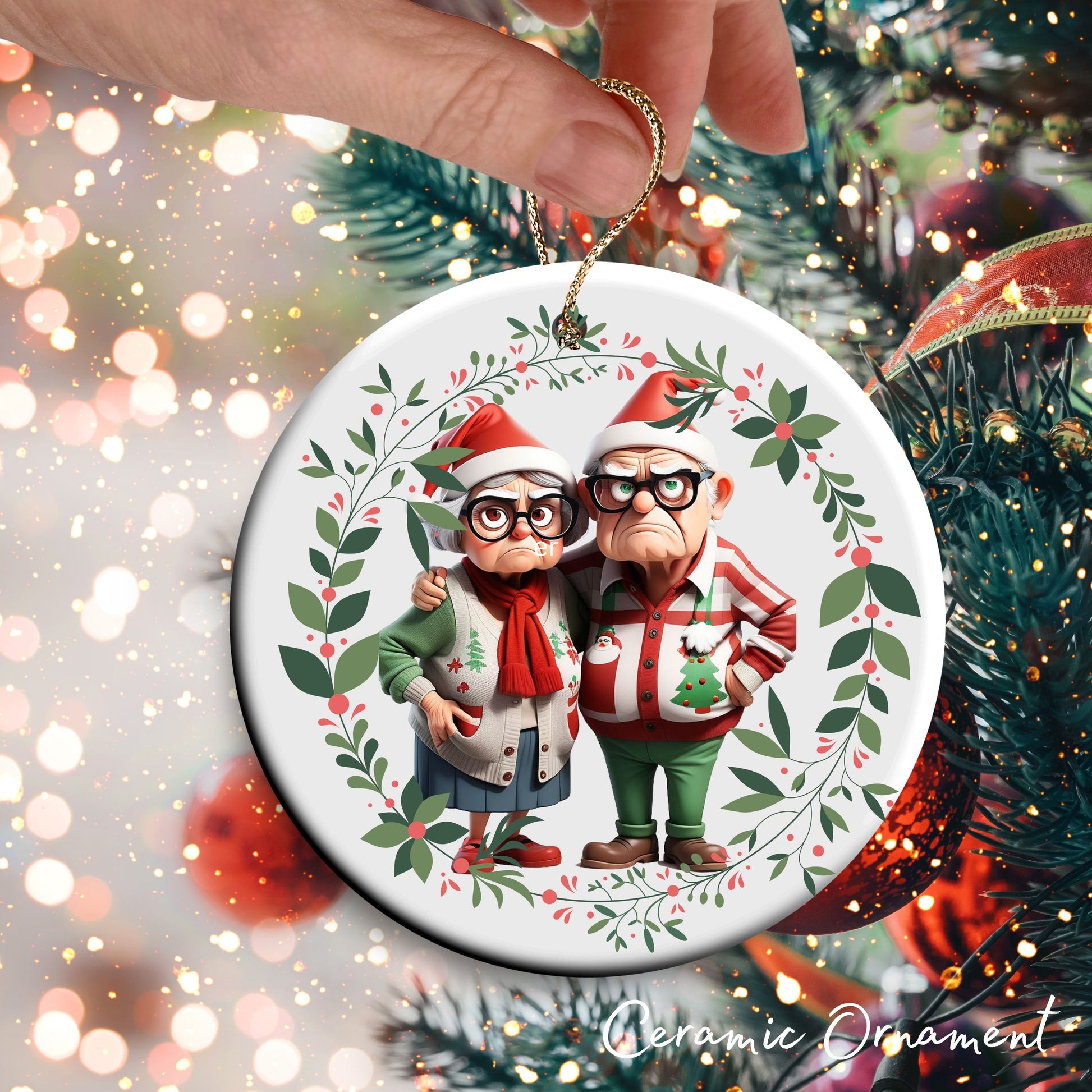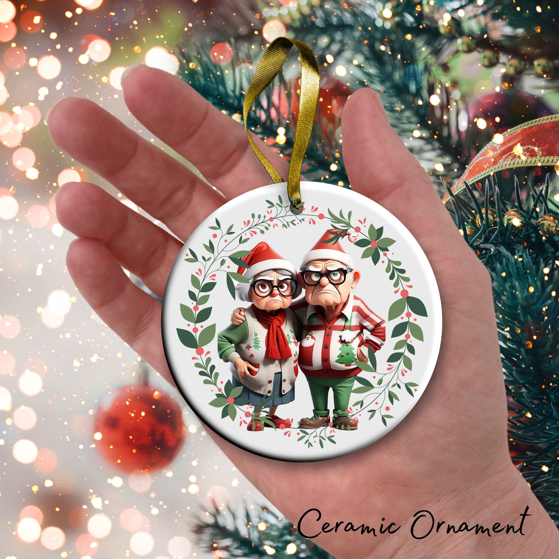 Grumpy Christmas Grandparents Ceramic Ornament 52-01