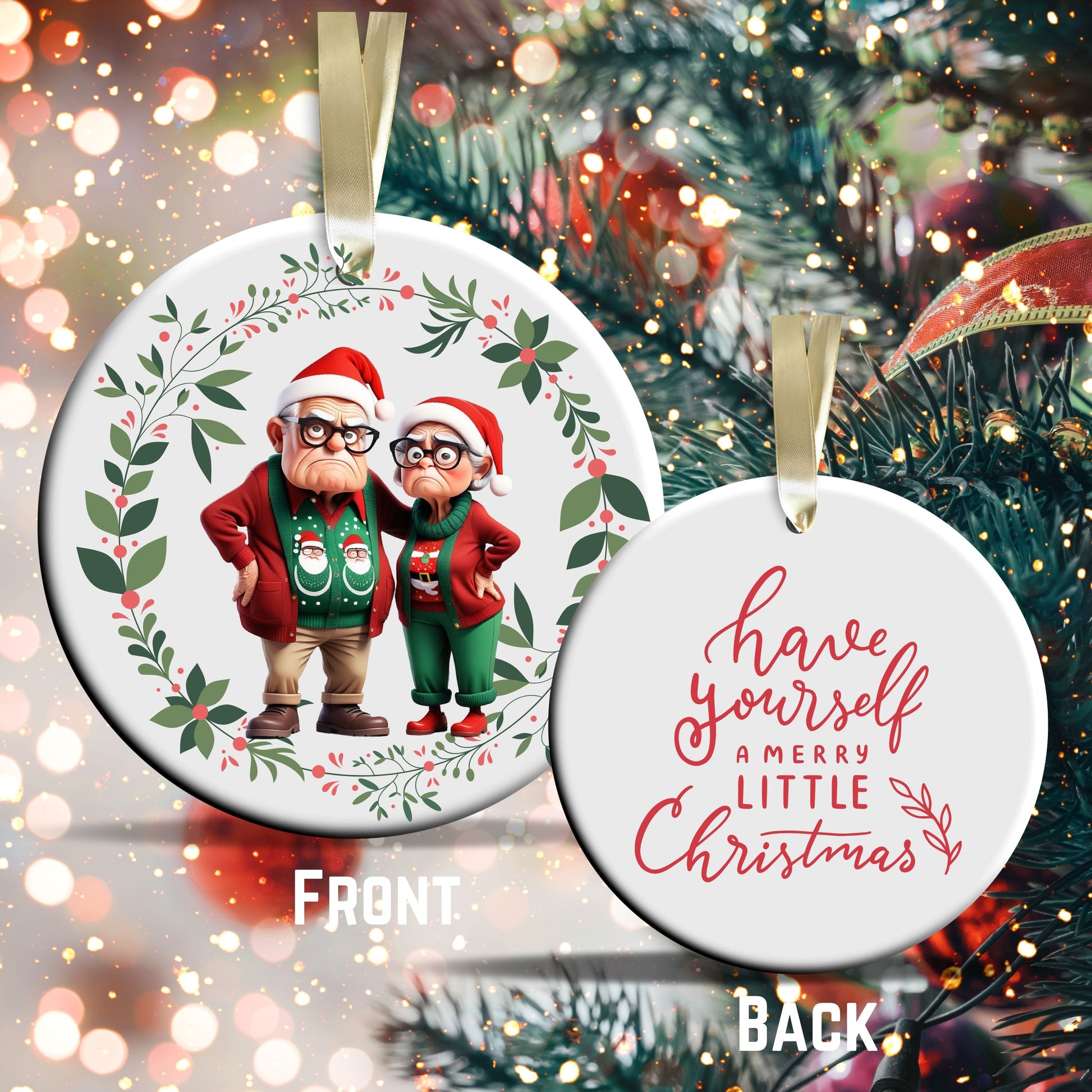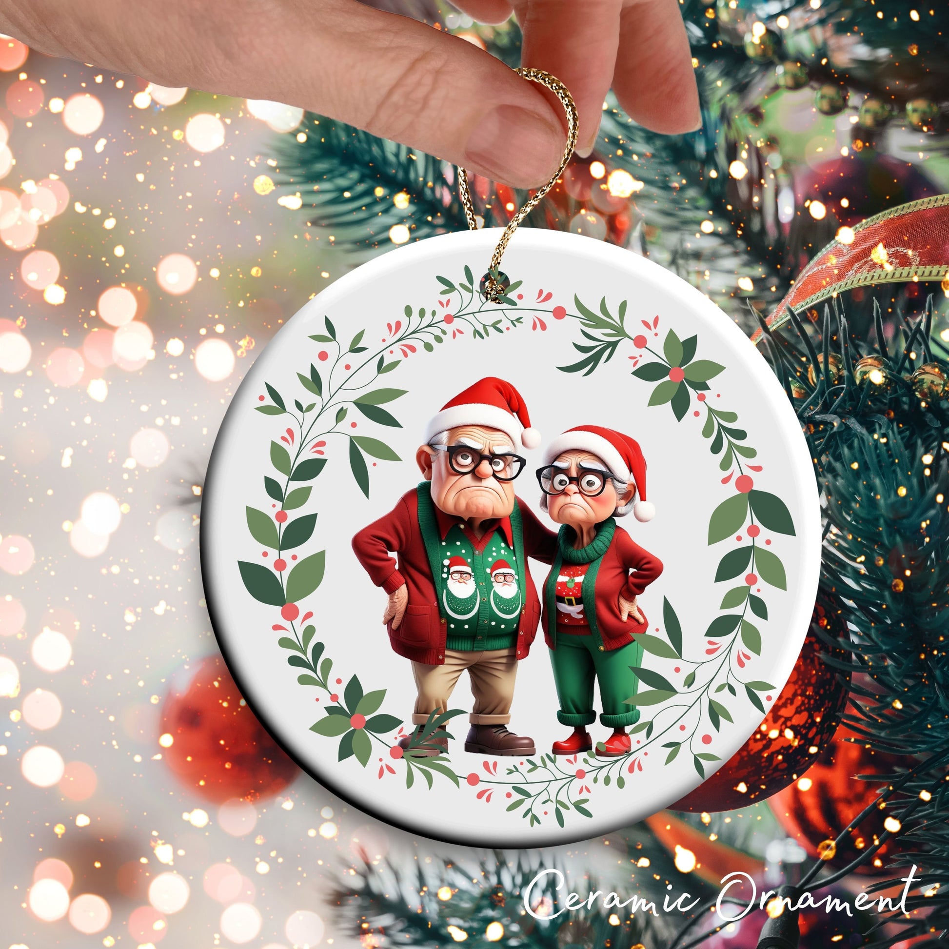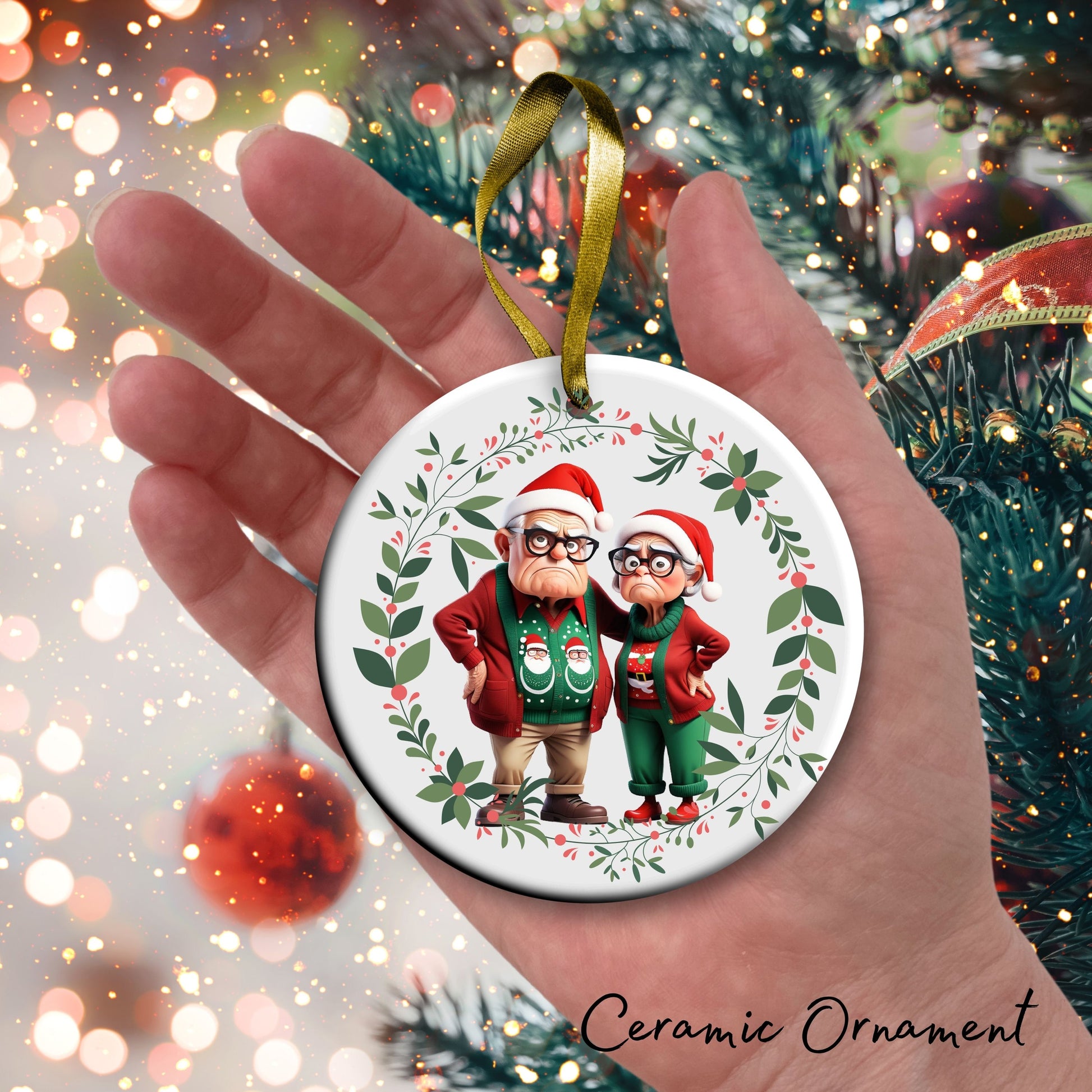 Grumpy Christmas Grandparents Ceramic Ornament 52-05