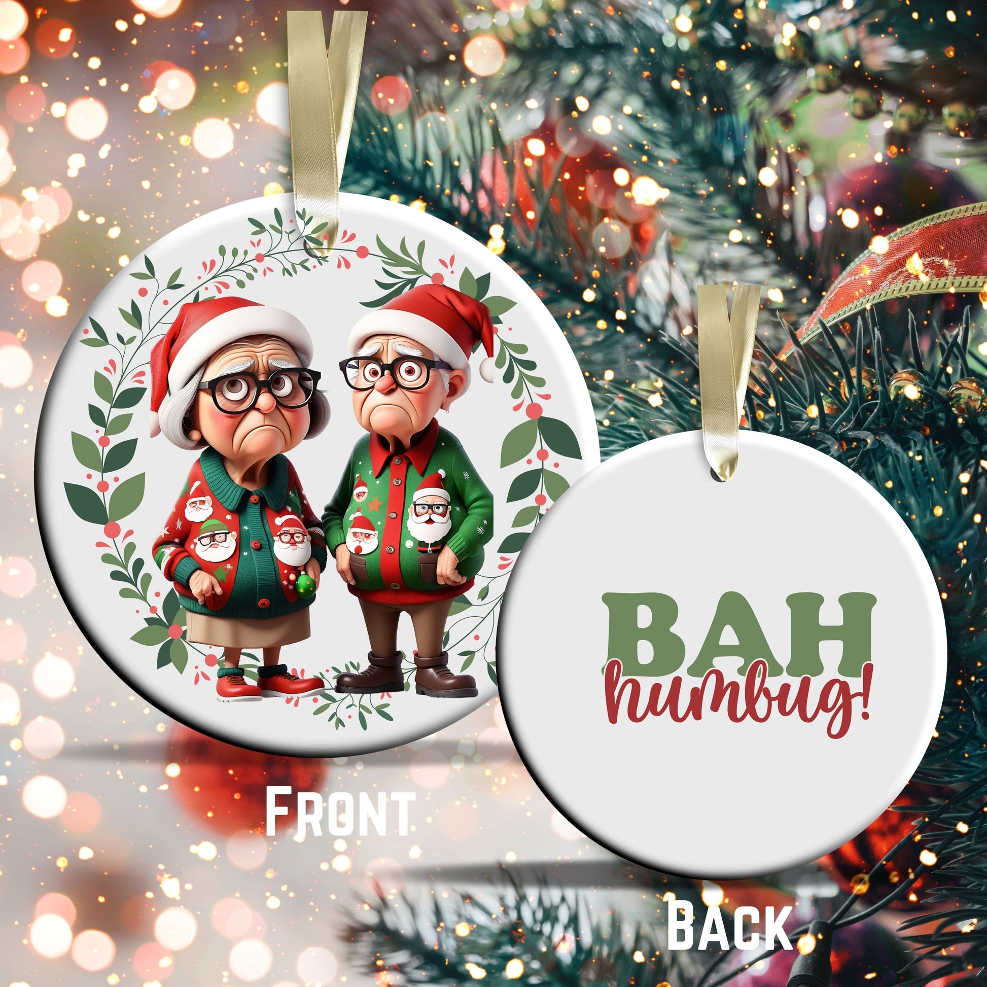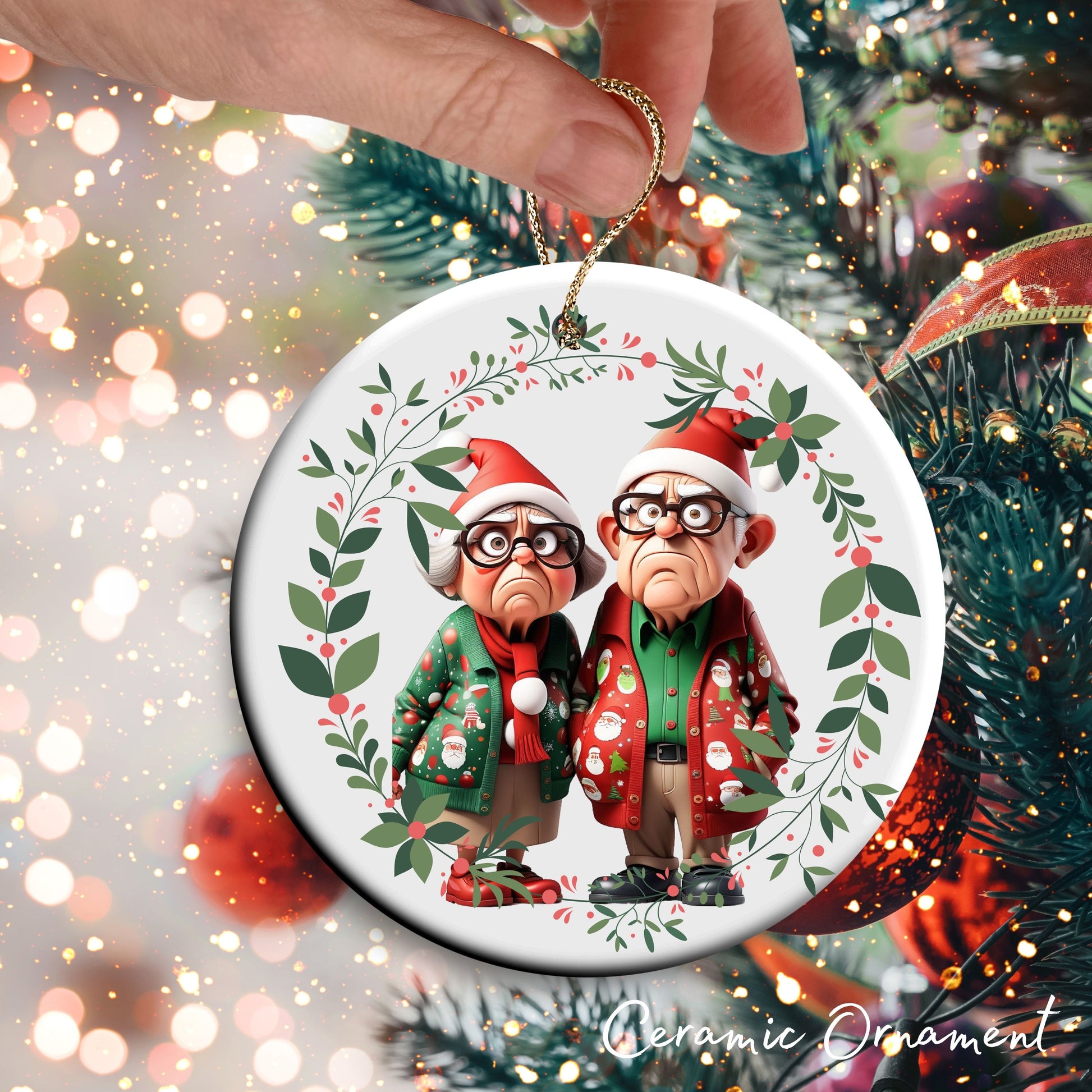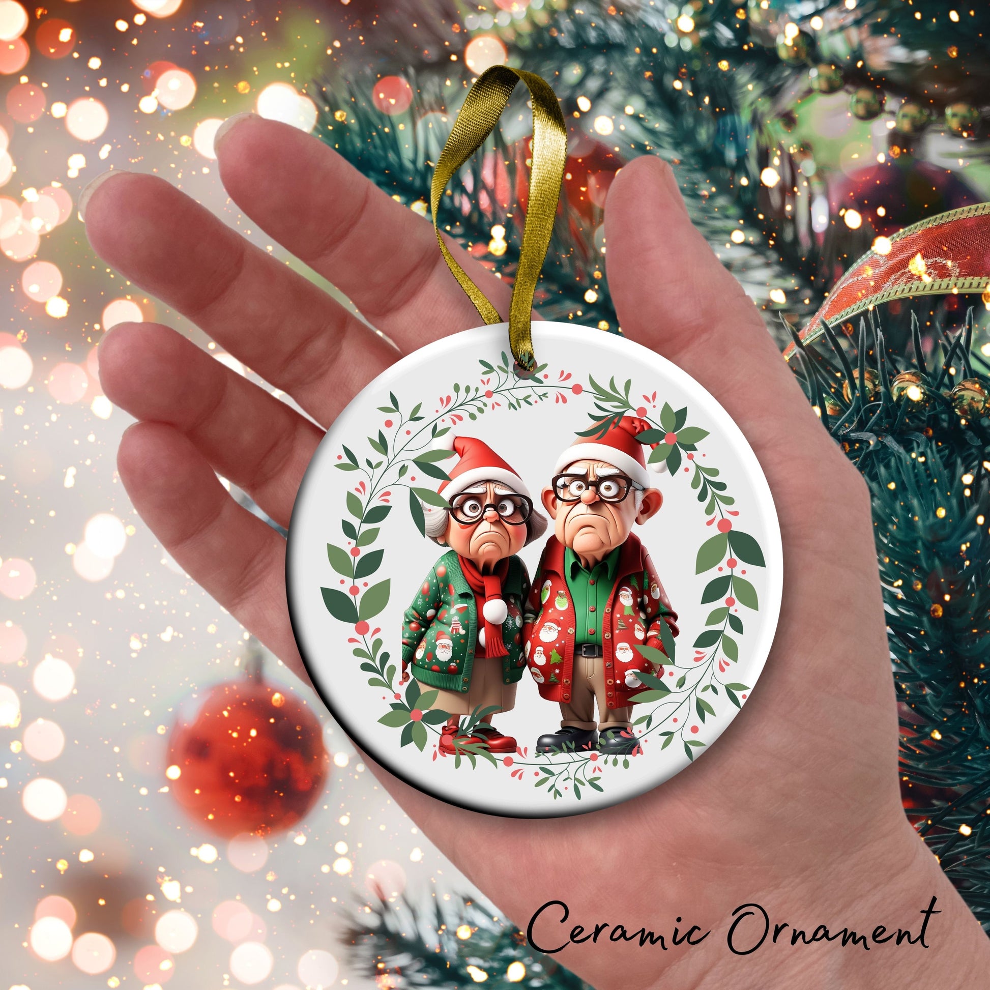 Grumpy Christmas Grandparents Ceramic Ornament 52-07