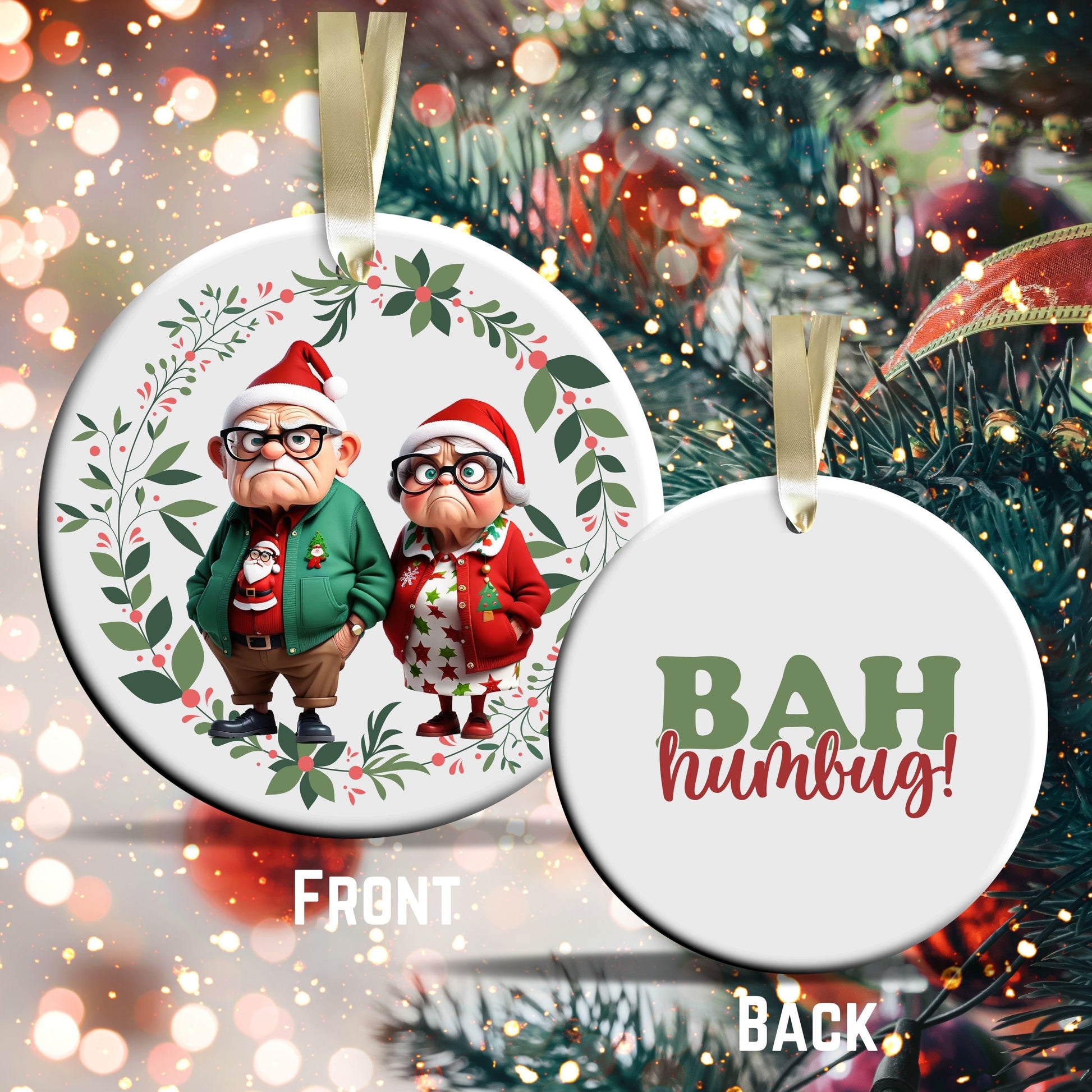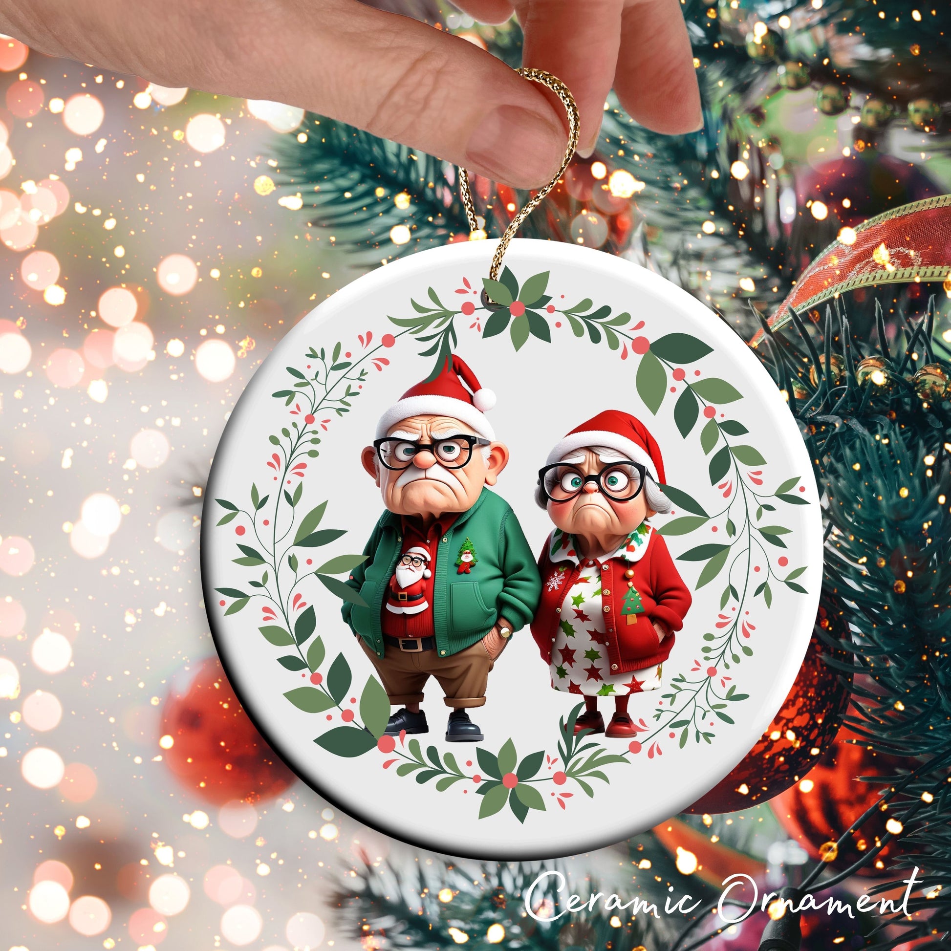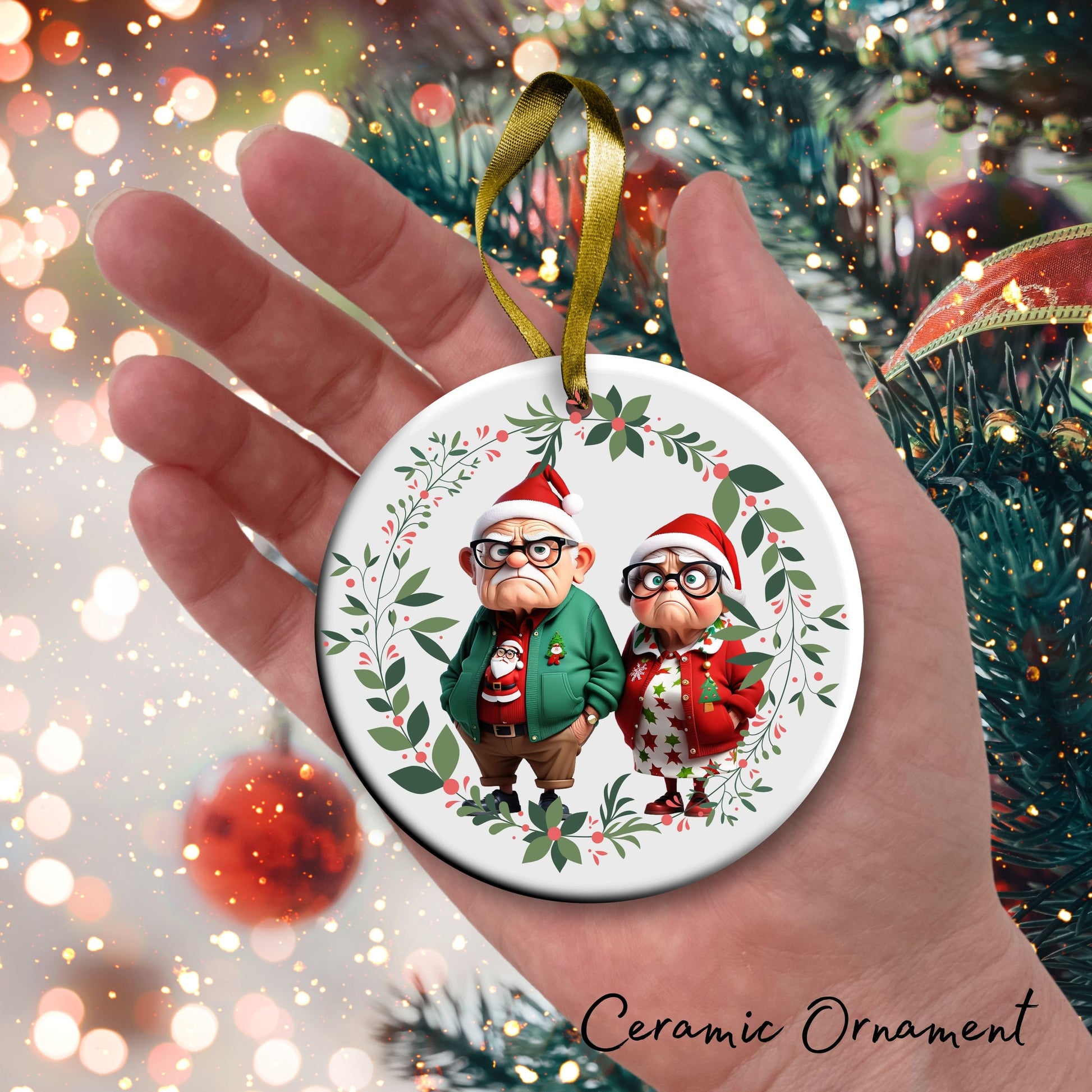 Grumpy Christmas Grandparents Ceramic Ornament 52-21
