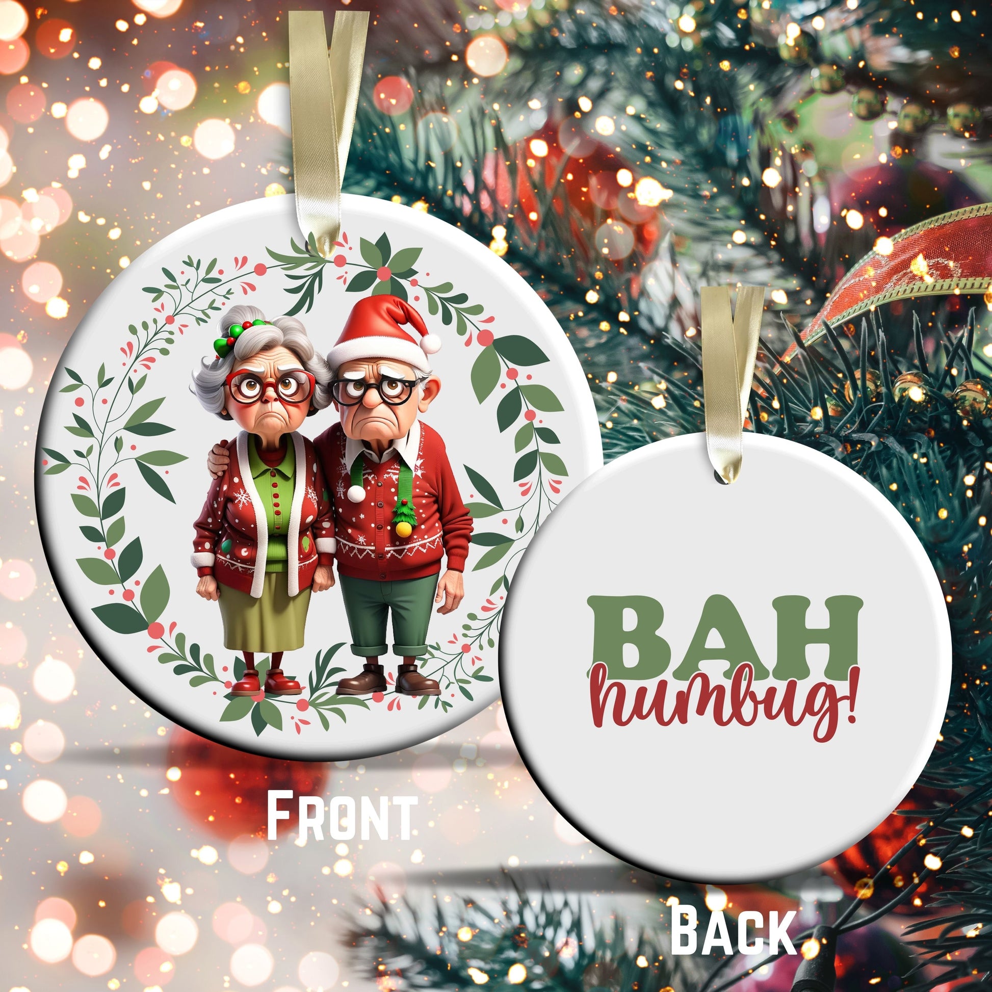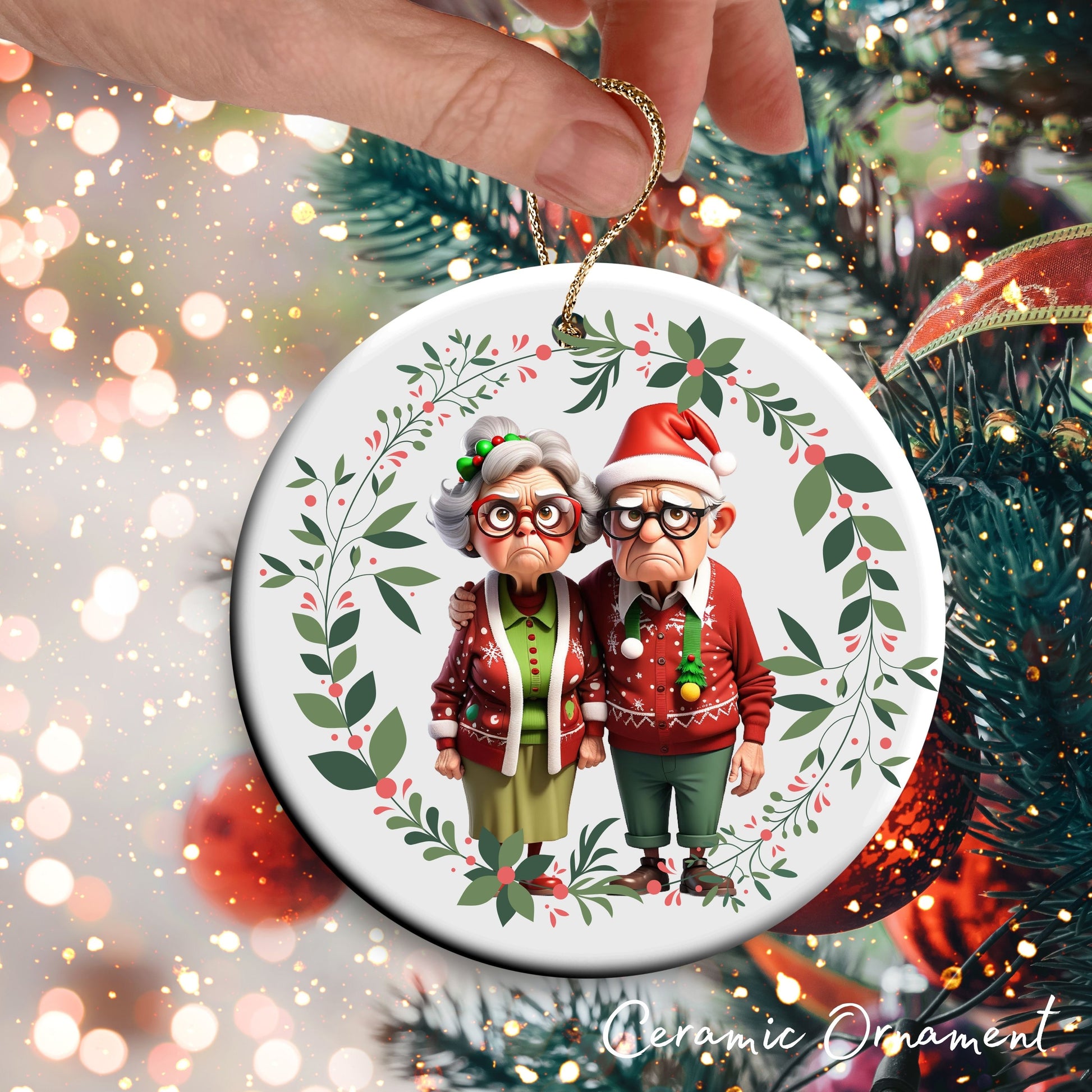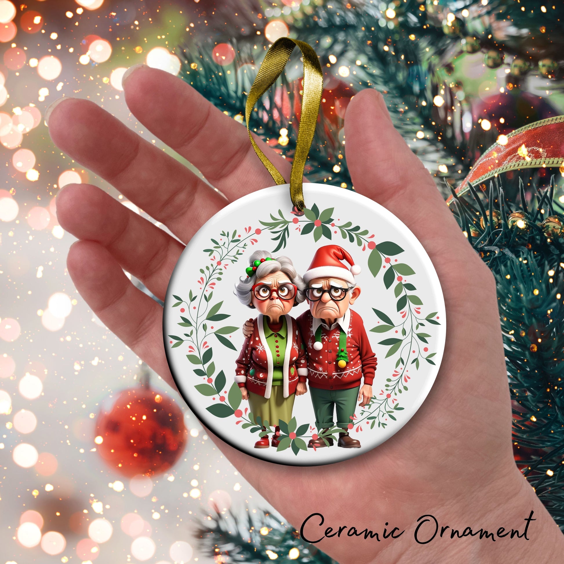 Grumpy Christmas Grandparents Ceramic Ornament 52-23