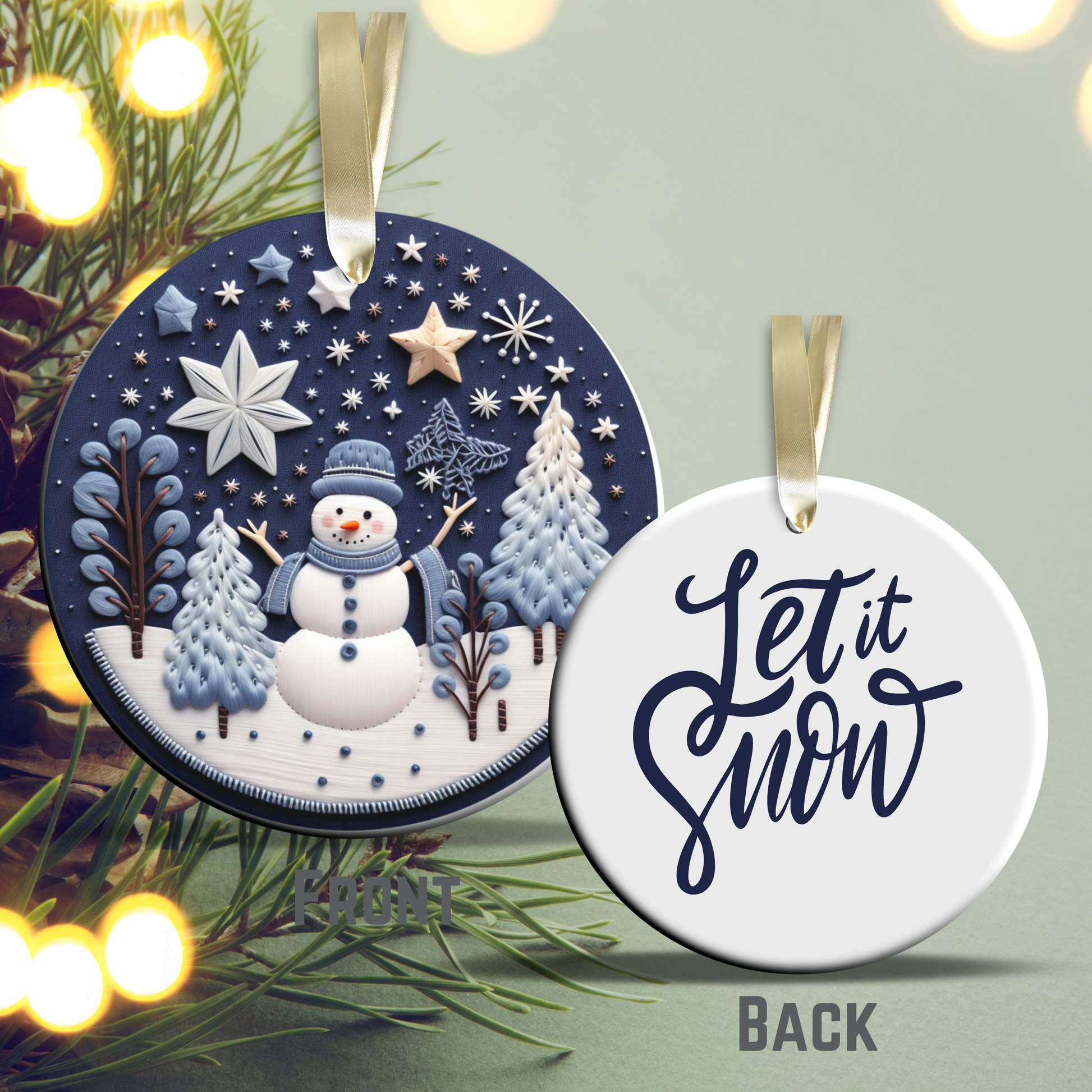 Let It Snow Snowman Ceramic Ornament 27-07