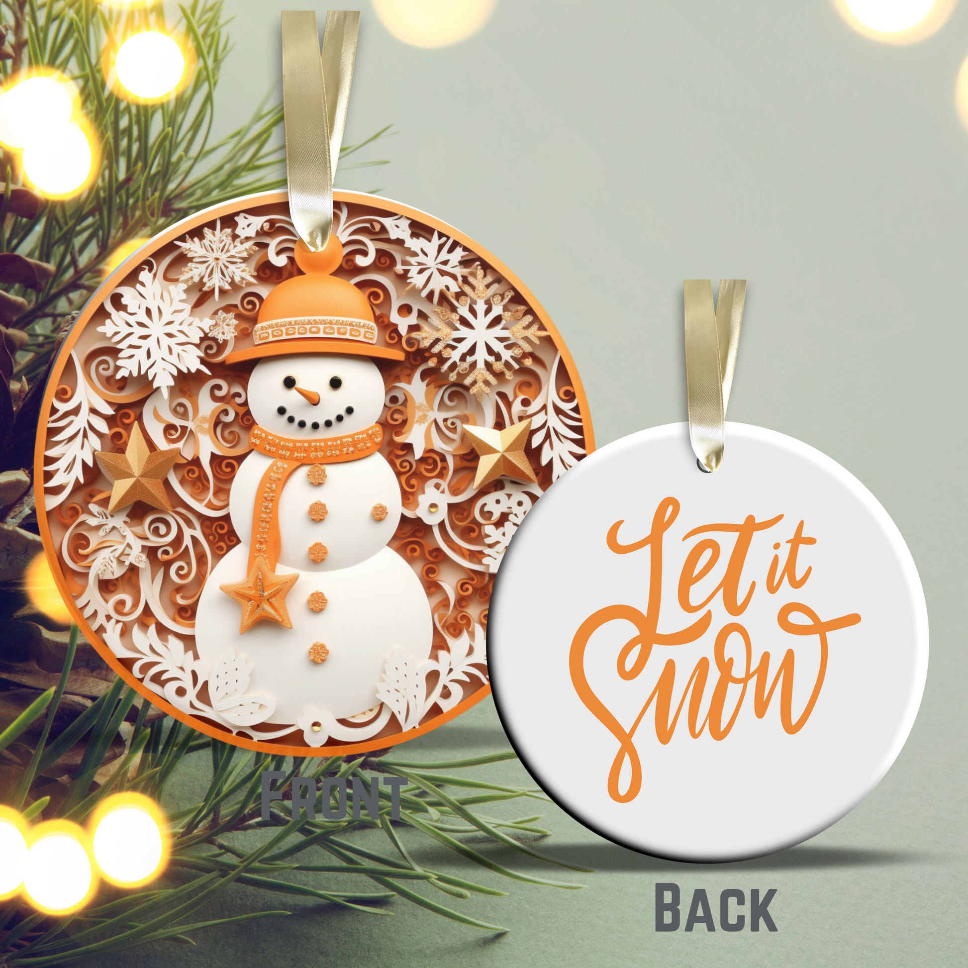Let It Snow Snowman Ceramic Ornament 27-14