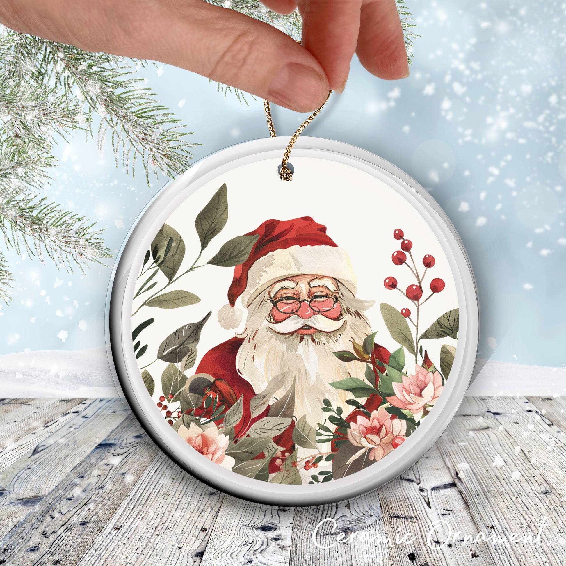 Retro Santa Claus Watercolor Ceramic Ornament 152-06
