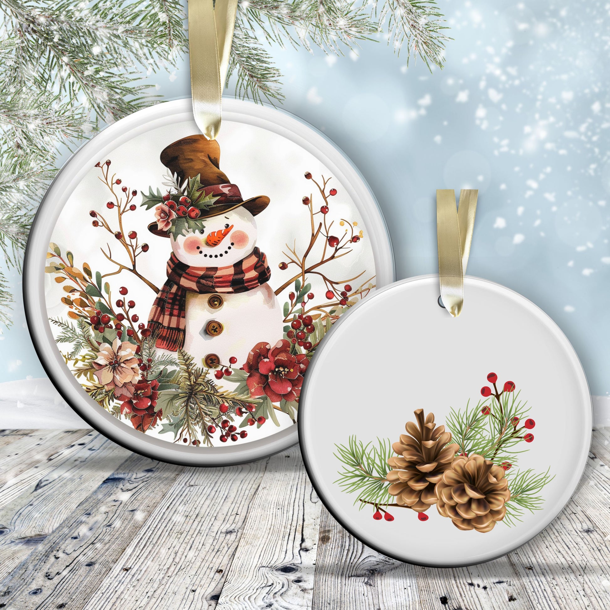 Retro Snowman Watercolor Ceramic Ornament 151-23