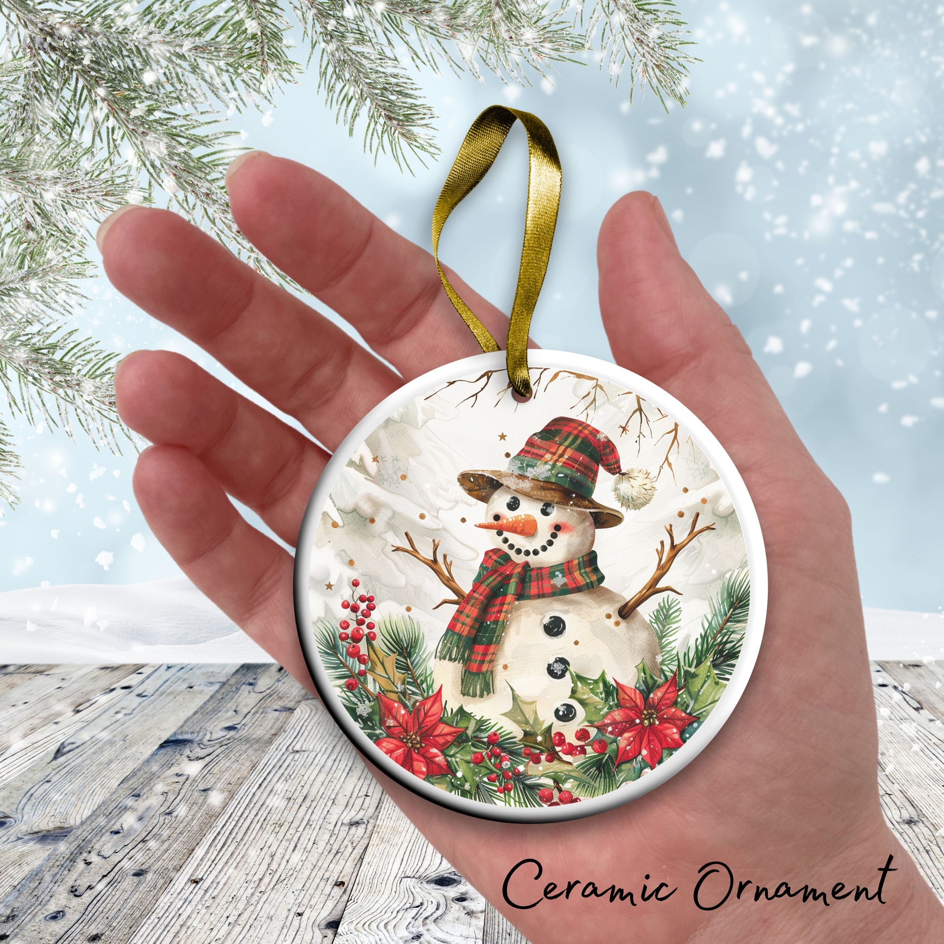 Retro Snowman Watercolor Ceramic Ornament 151-32