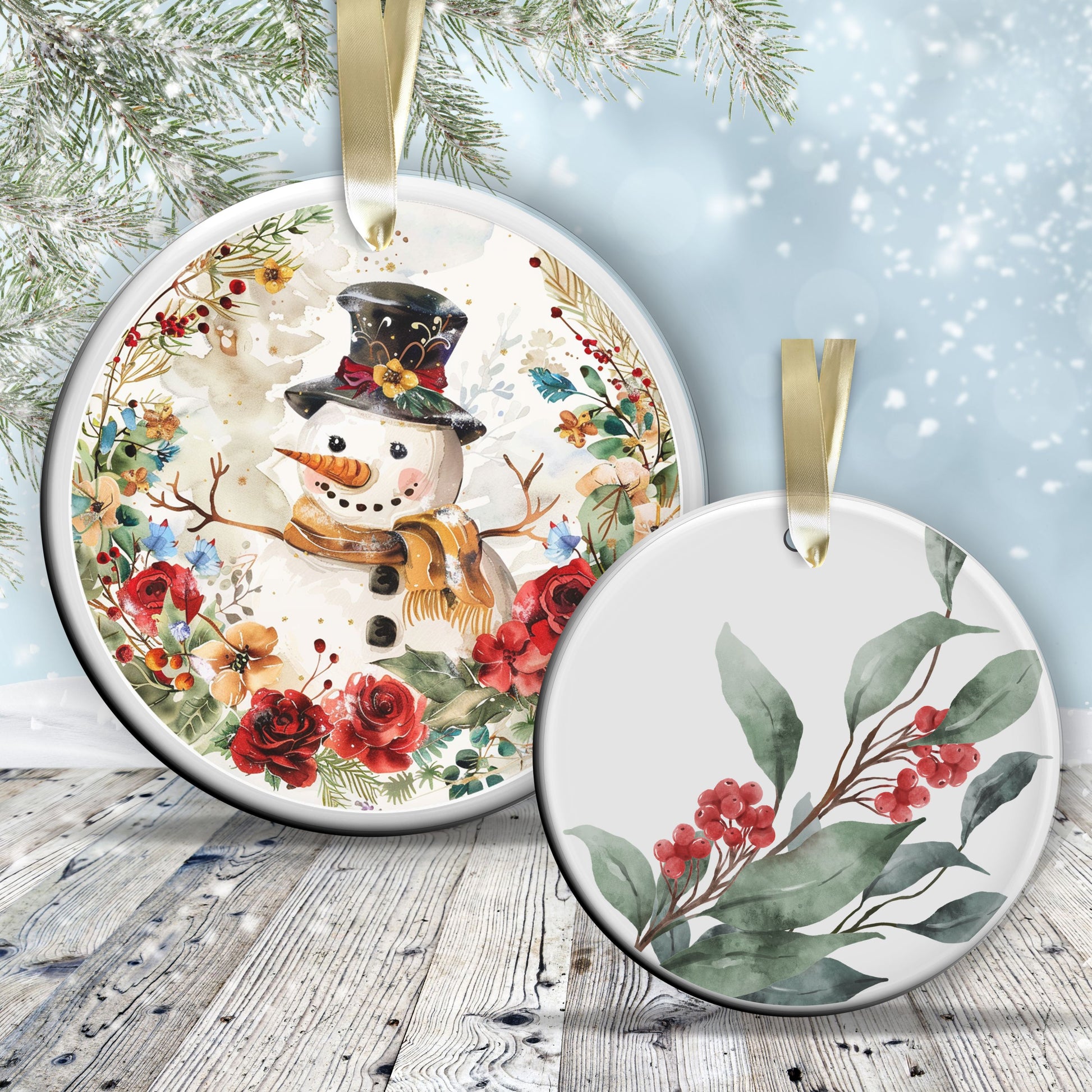 Retro Snowman Watercolor Ceramic Ornament 151-45