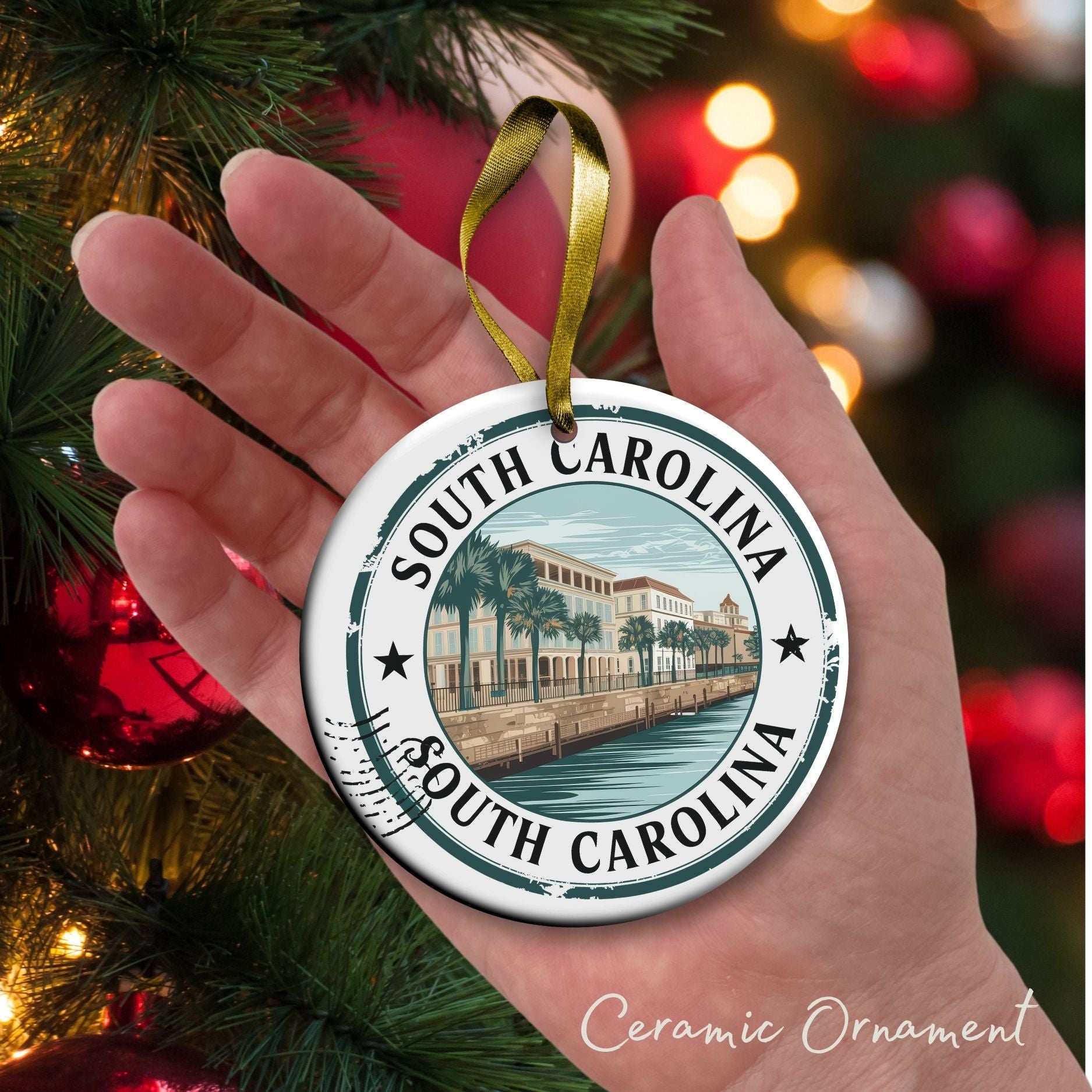 South Carolina State Christmas Ornament - Personalized Ceramic 66-SC