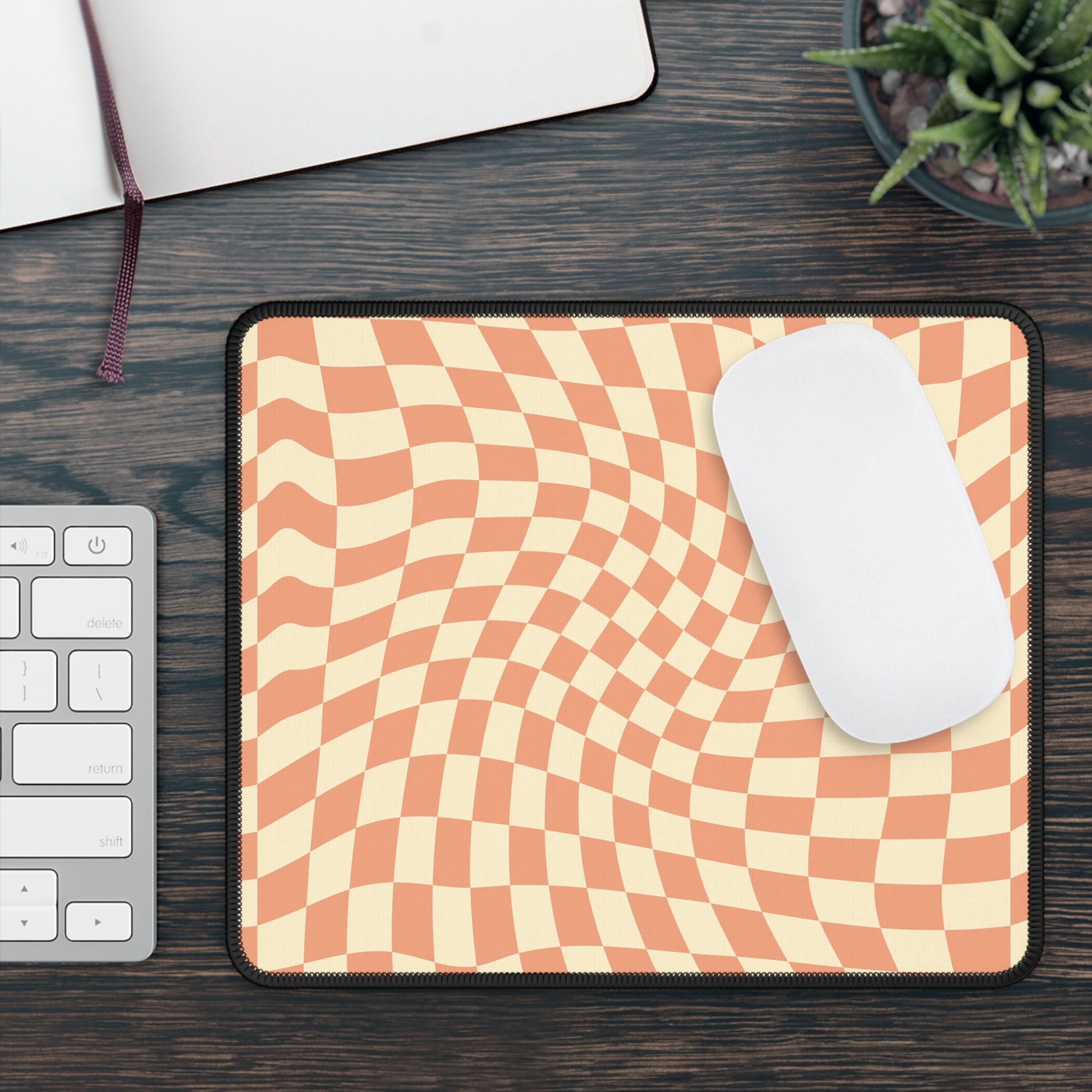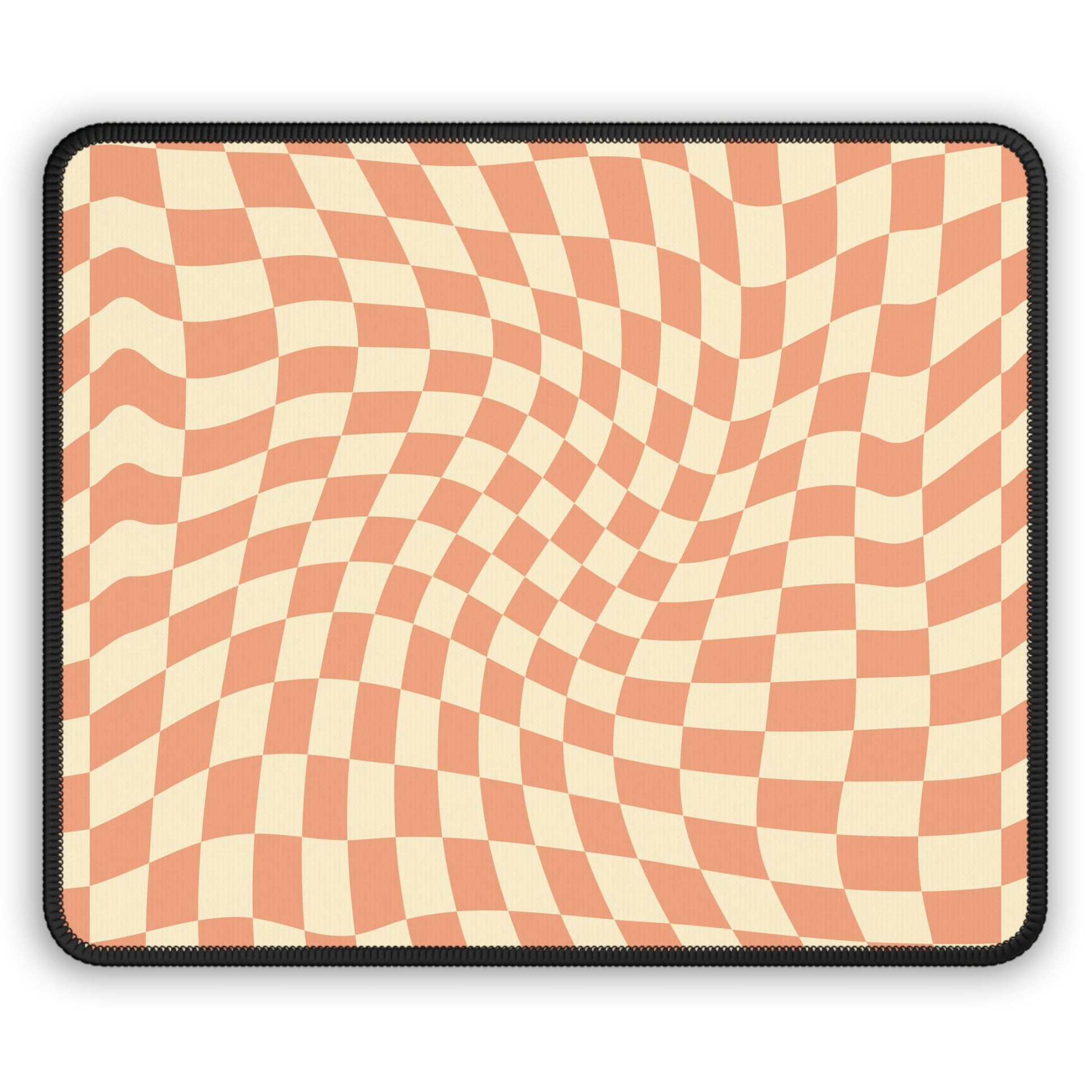 Trendy Wavy Peach Cream Checkerboard Non Slip Gaming Mouse Pad