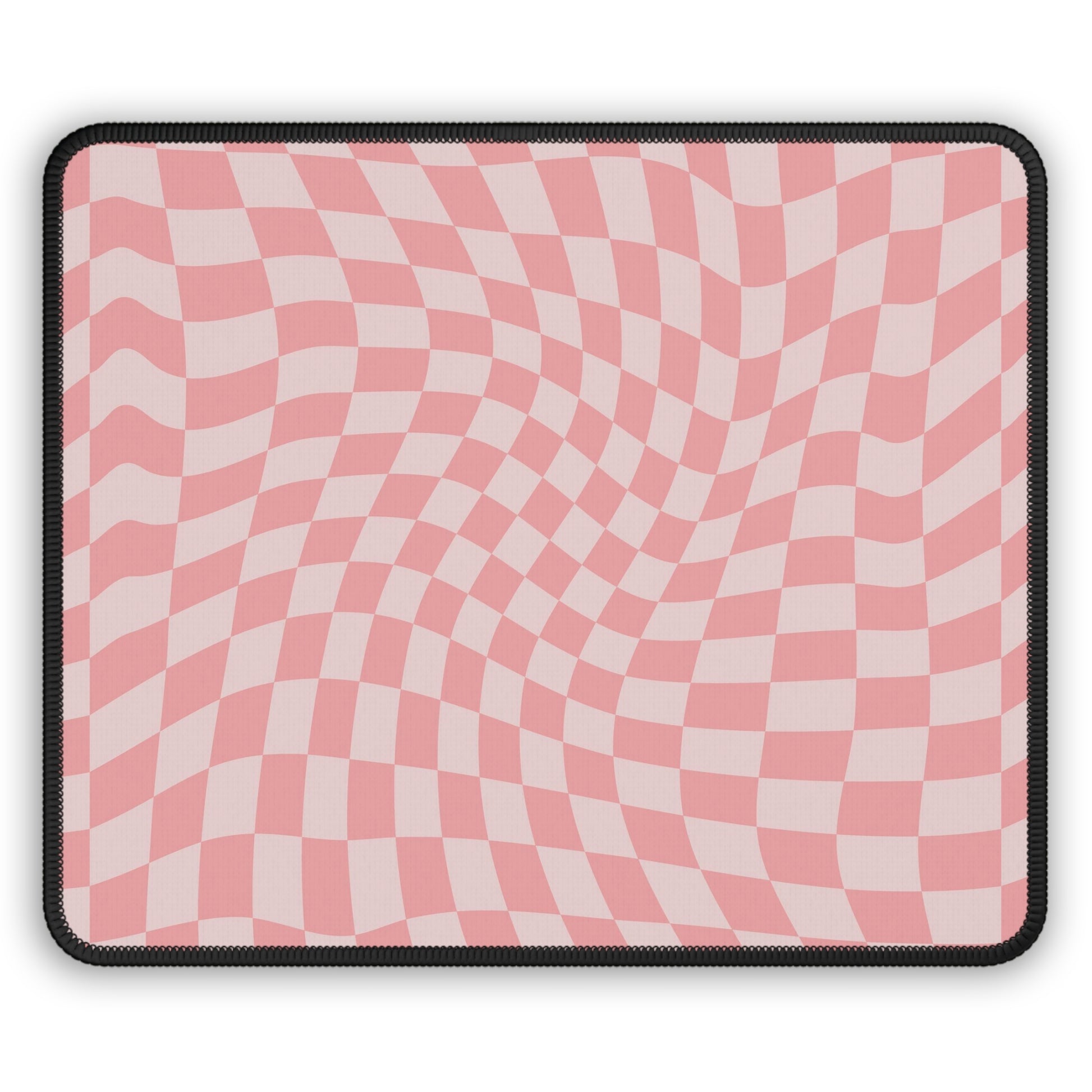 Trendy Wavy Pink Checkerboard Non Slip Gaming Mouse Pad