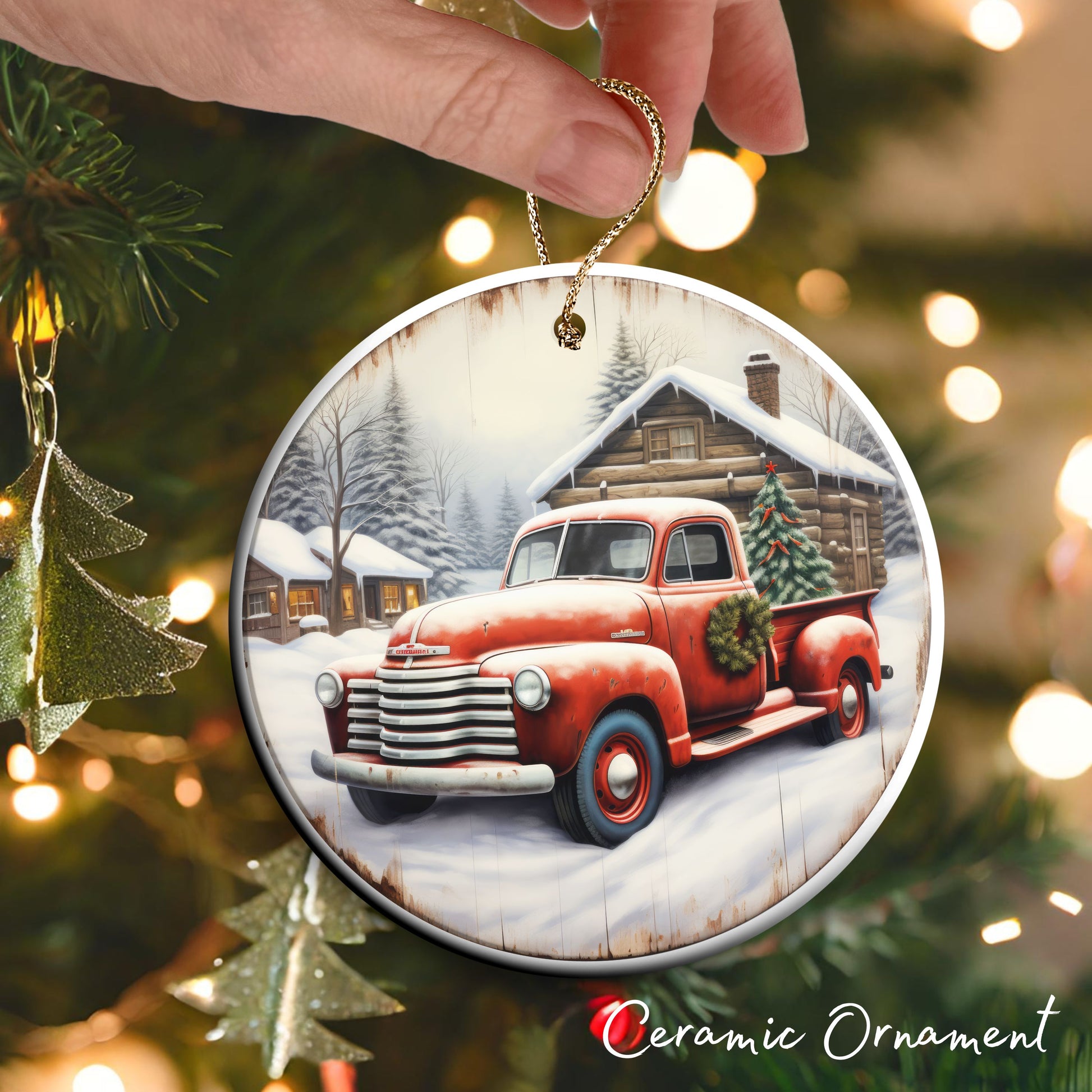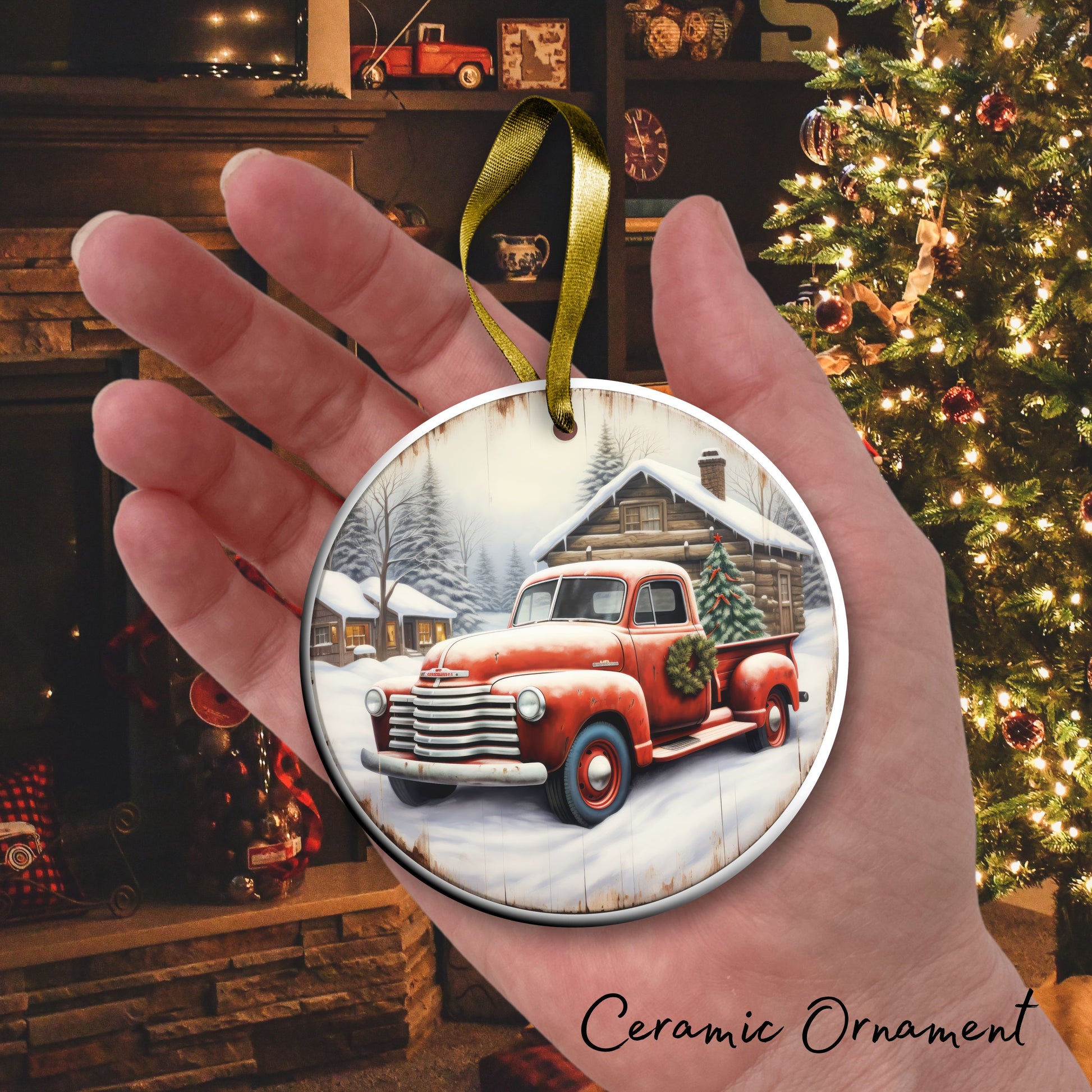 Vintage Farm Red Truck Christmas Ceramic Ornament 01-21