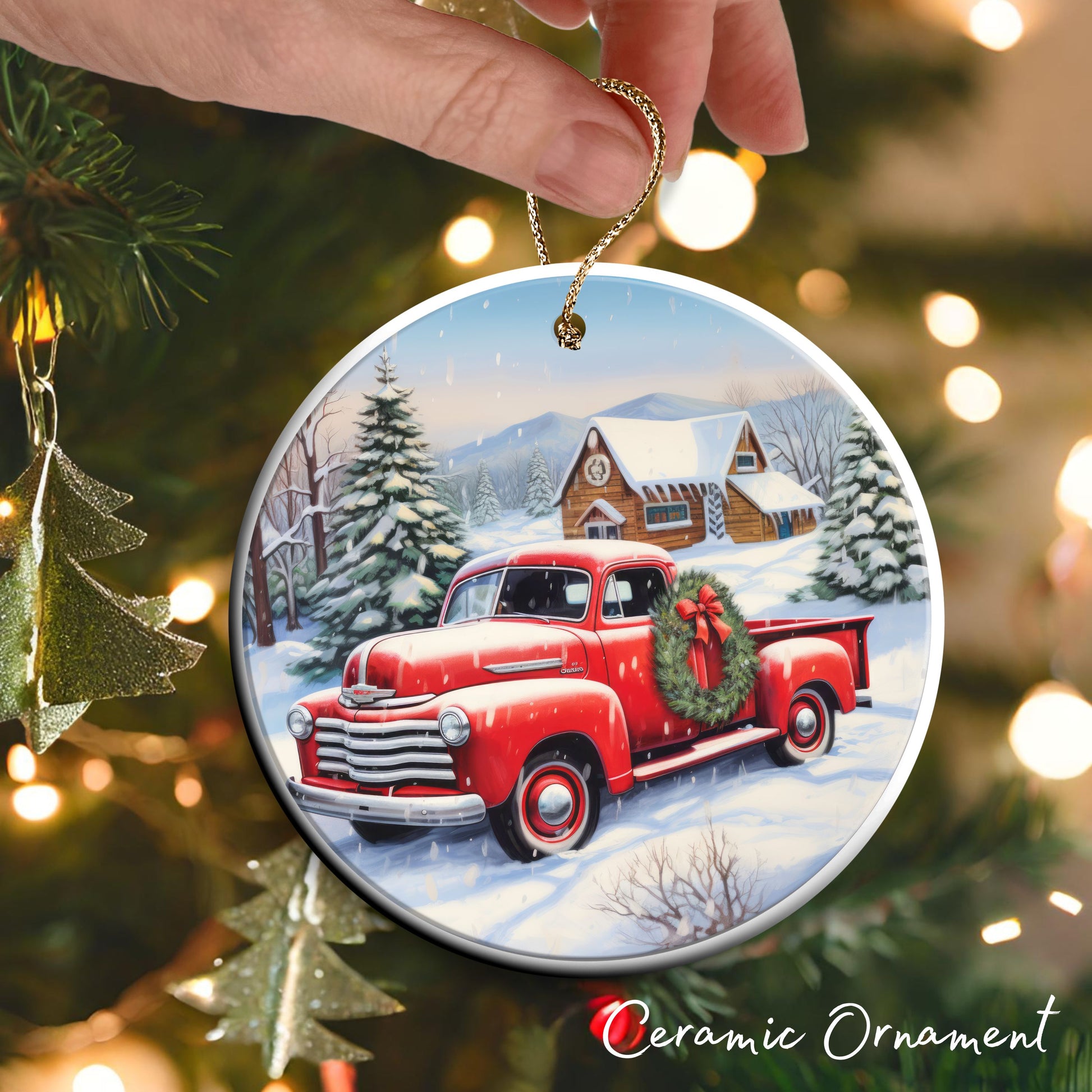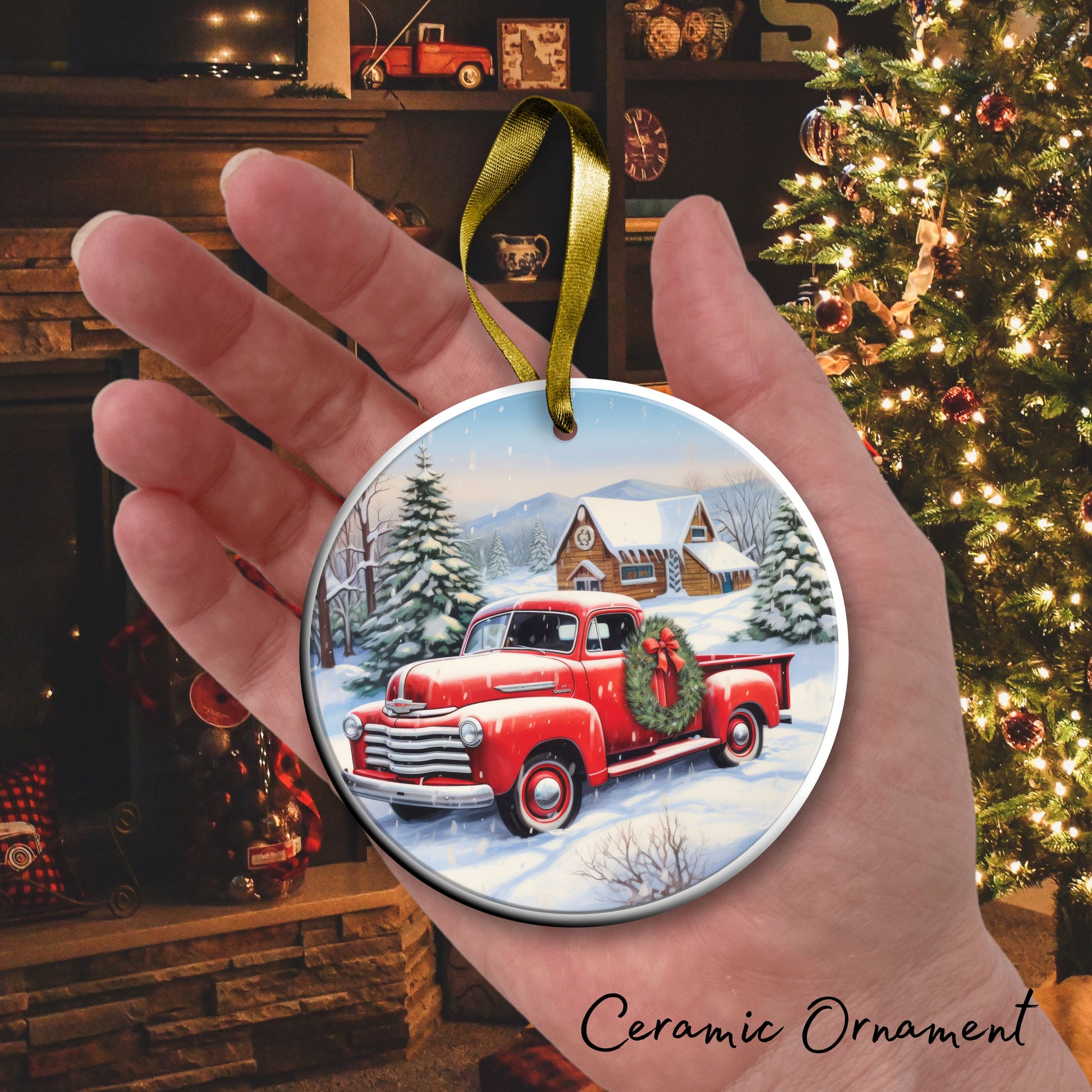 Vintage Farm Red Truck Christmas Ceramic Ornament 01-29
