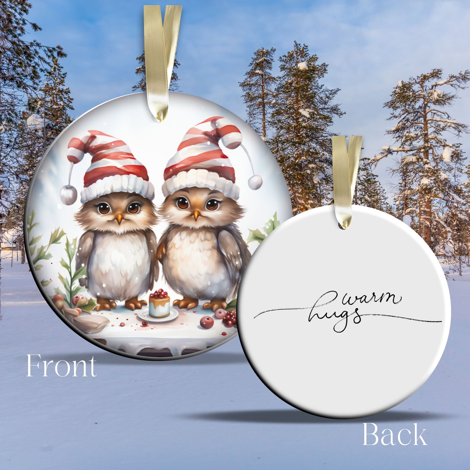 Warm Hugs Funny Bird Christmas Ceramic Ornament 45-02