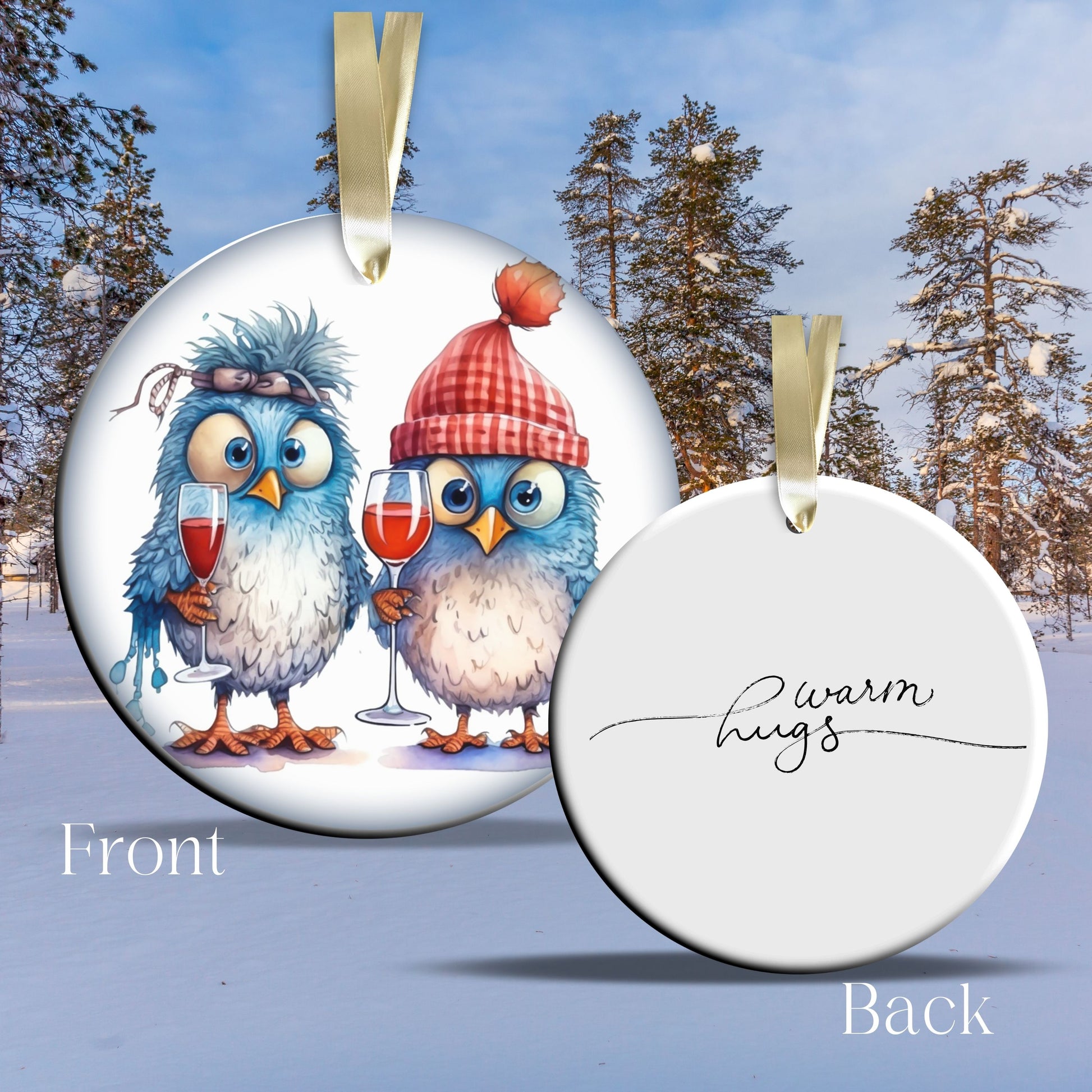 Warm Hugs Funny Bird Christmas Ceramic Ornament 45-32