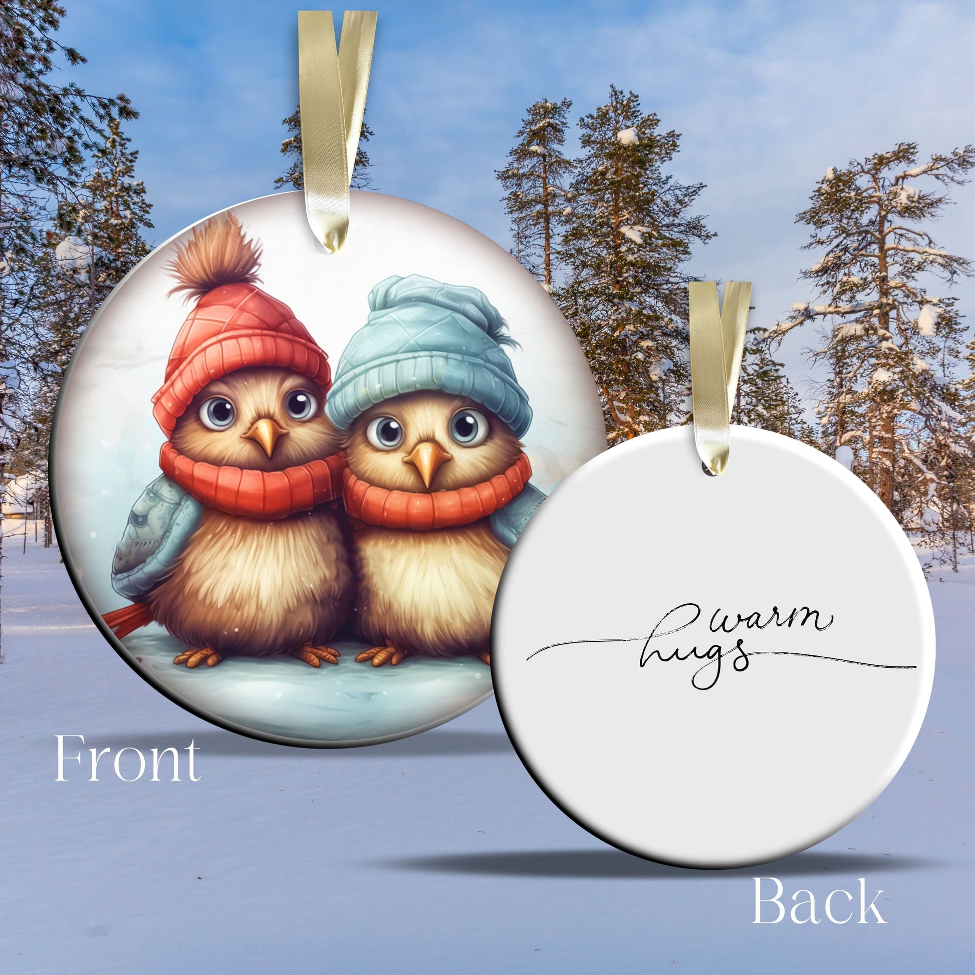 Warm Hugs Funny Bird Christmas Ceramic Ornament 45-44