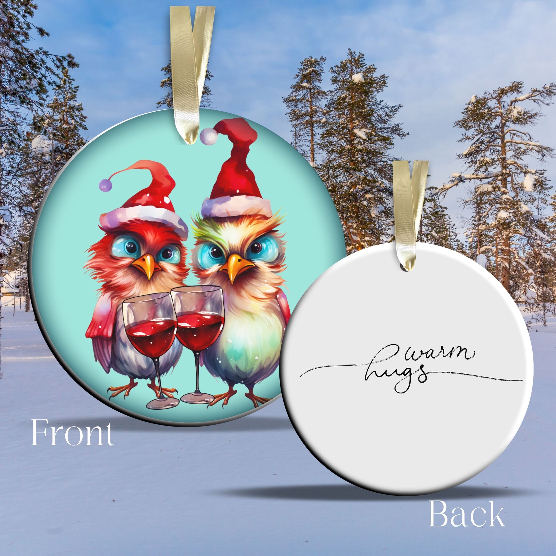Warm Hugs Funny Bird Christmas Ceramic Ornament 45-68