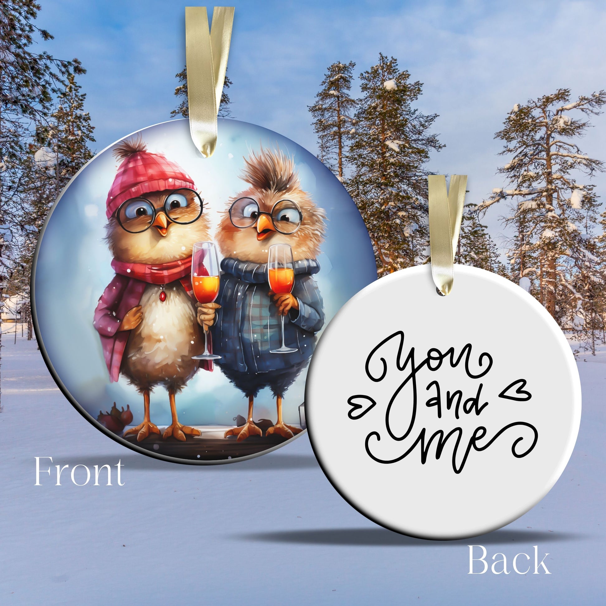 You and Me Bestie Funny Bird Christmas Ceramic Ornament 45-18